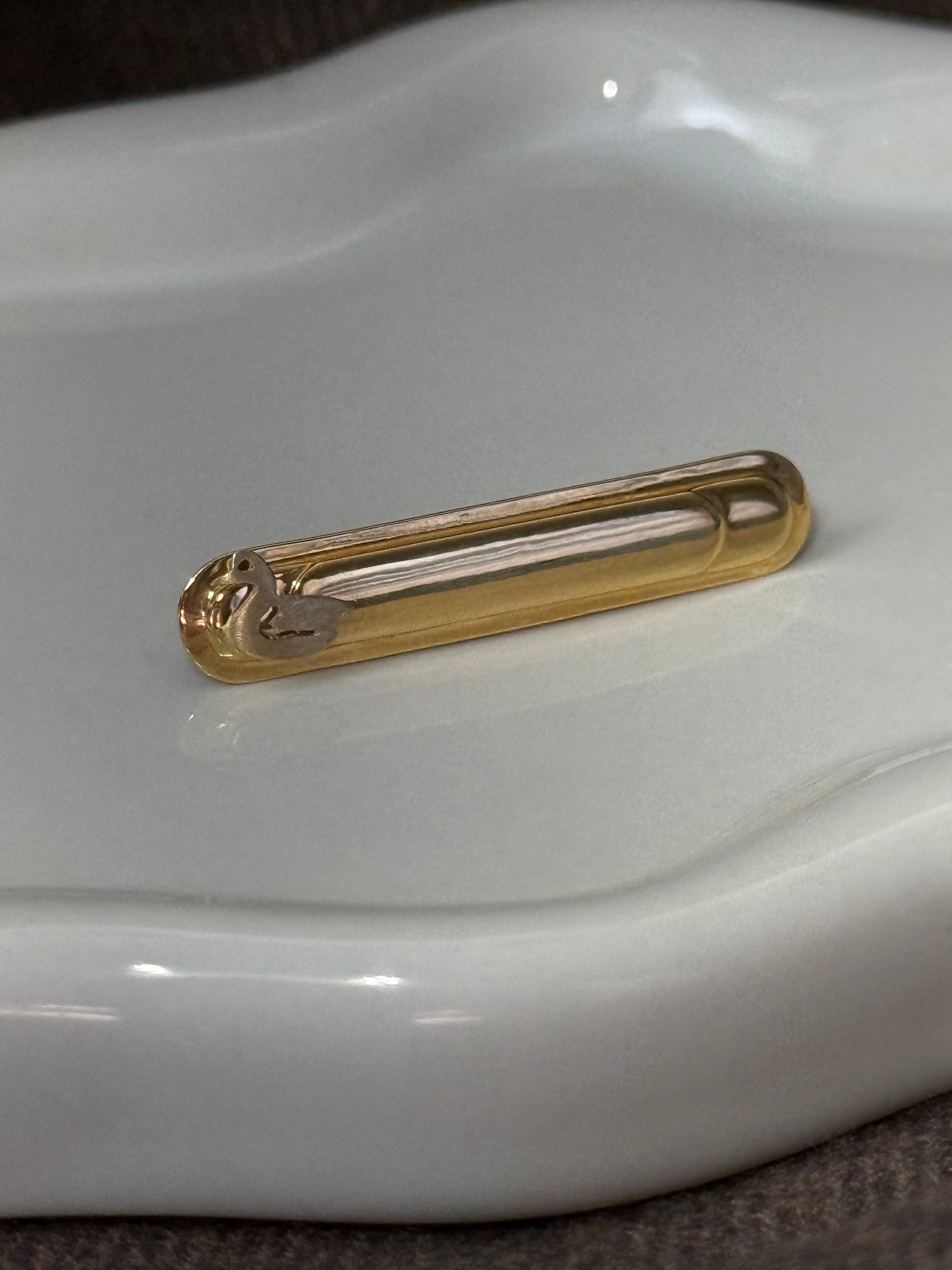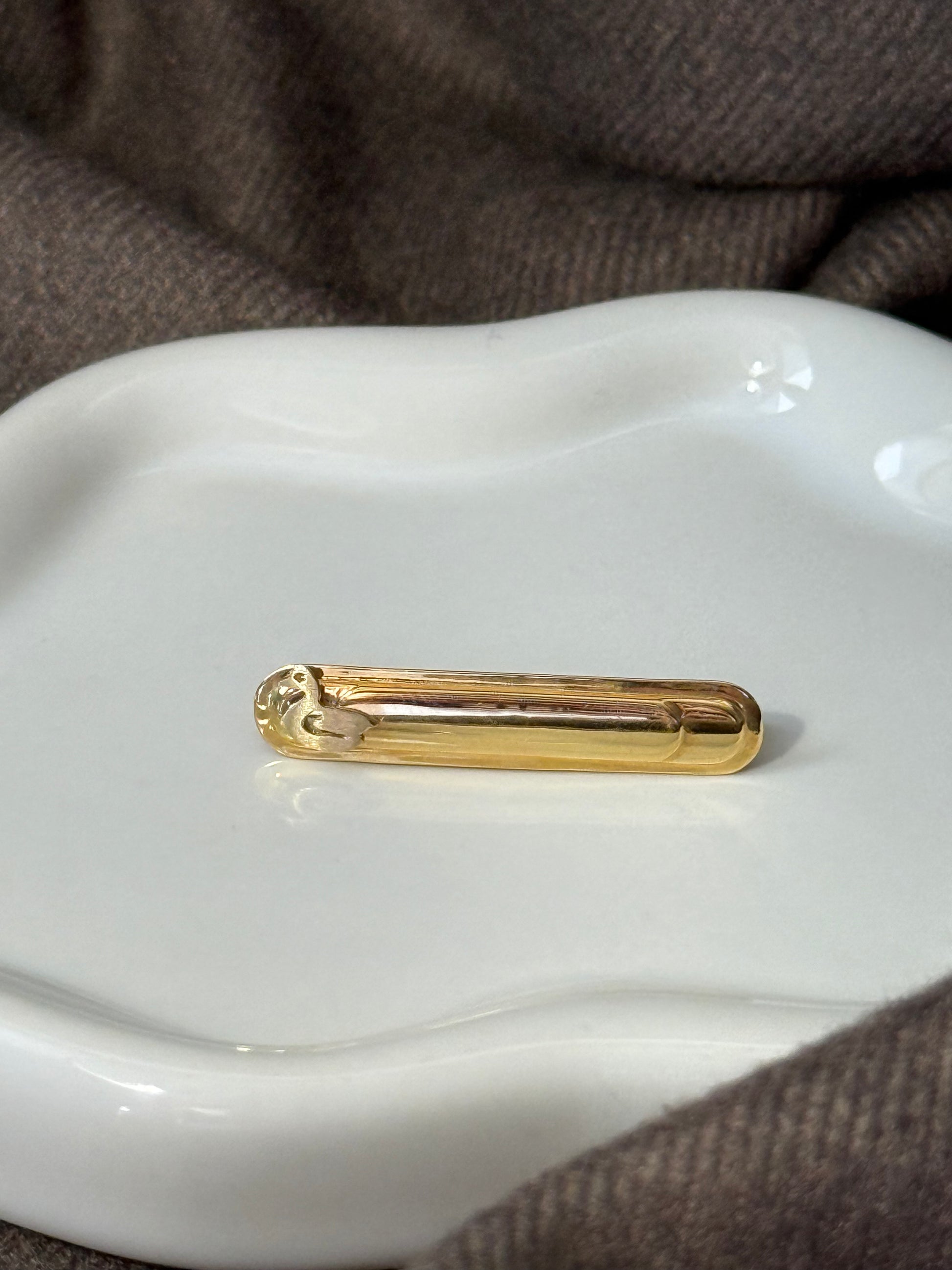Com um patinho na extremidade, este alfinete em ouro combina a simplicidade geométrica com um detalhe lúdico e inesperado. Um acessório discreto, mas cheio de personalidade, ideal para quem gosta de marcar pela originalidade subtil.