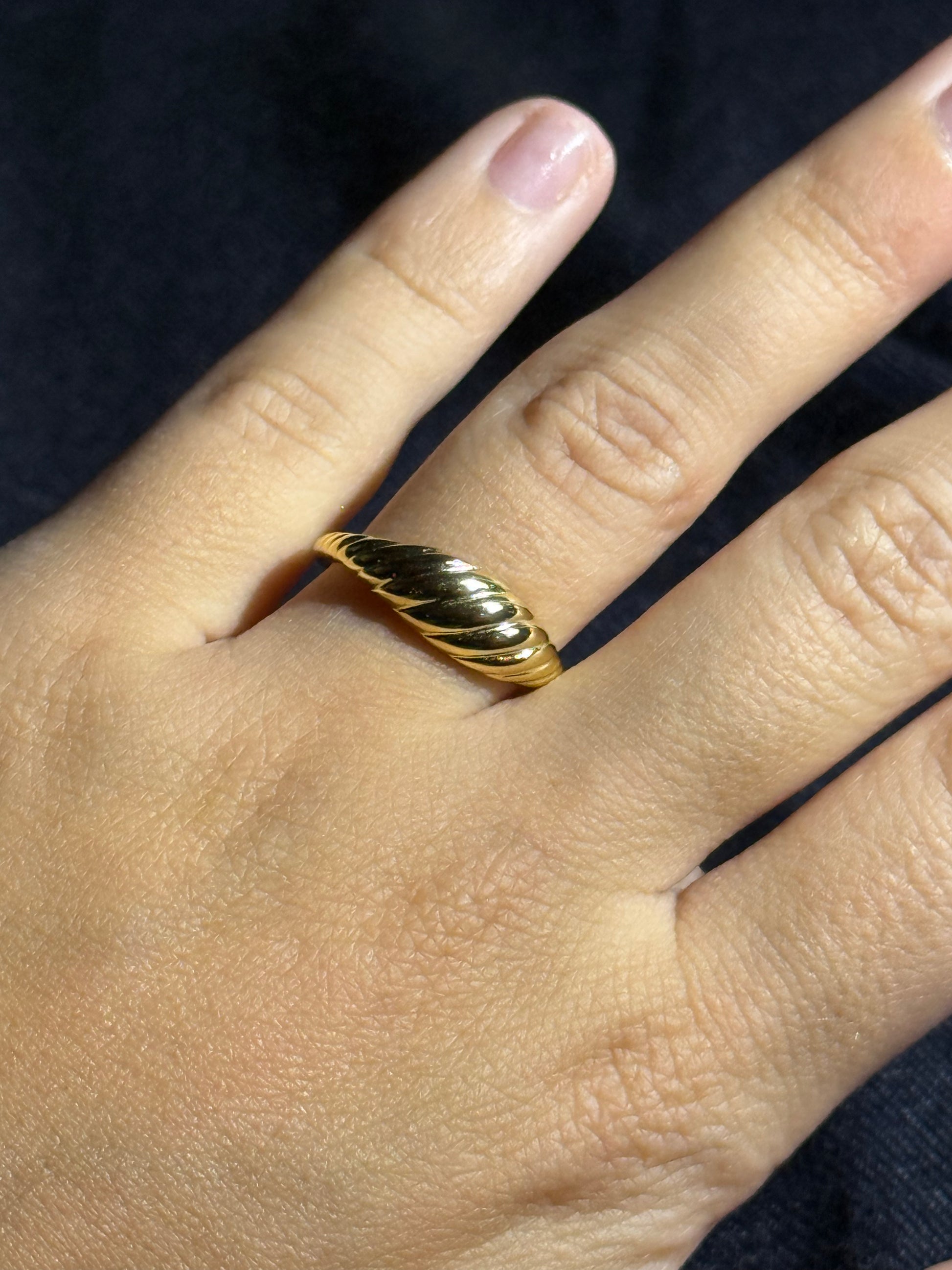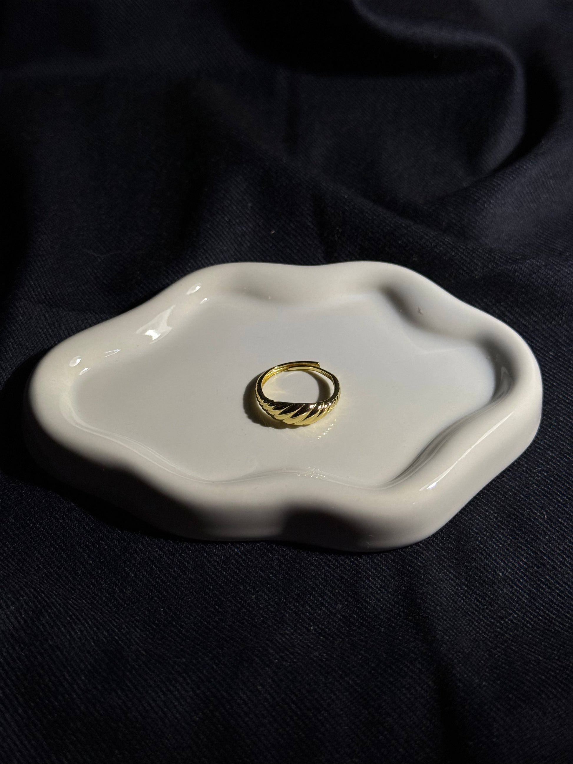 Com um design inspirado nas formas da natureza, o Anel Duna é feito em prata de lei com banho dourado e acabamento polido. O formato ajustável permite um encaixe perfeito em qualquer dedo, tornando-o uma peça confortável, moderna e cheia de presença. Aconselhamos a usar no indicador!