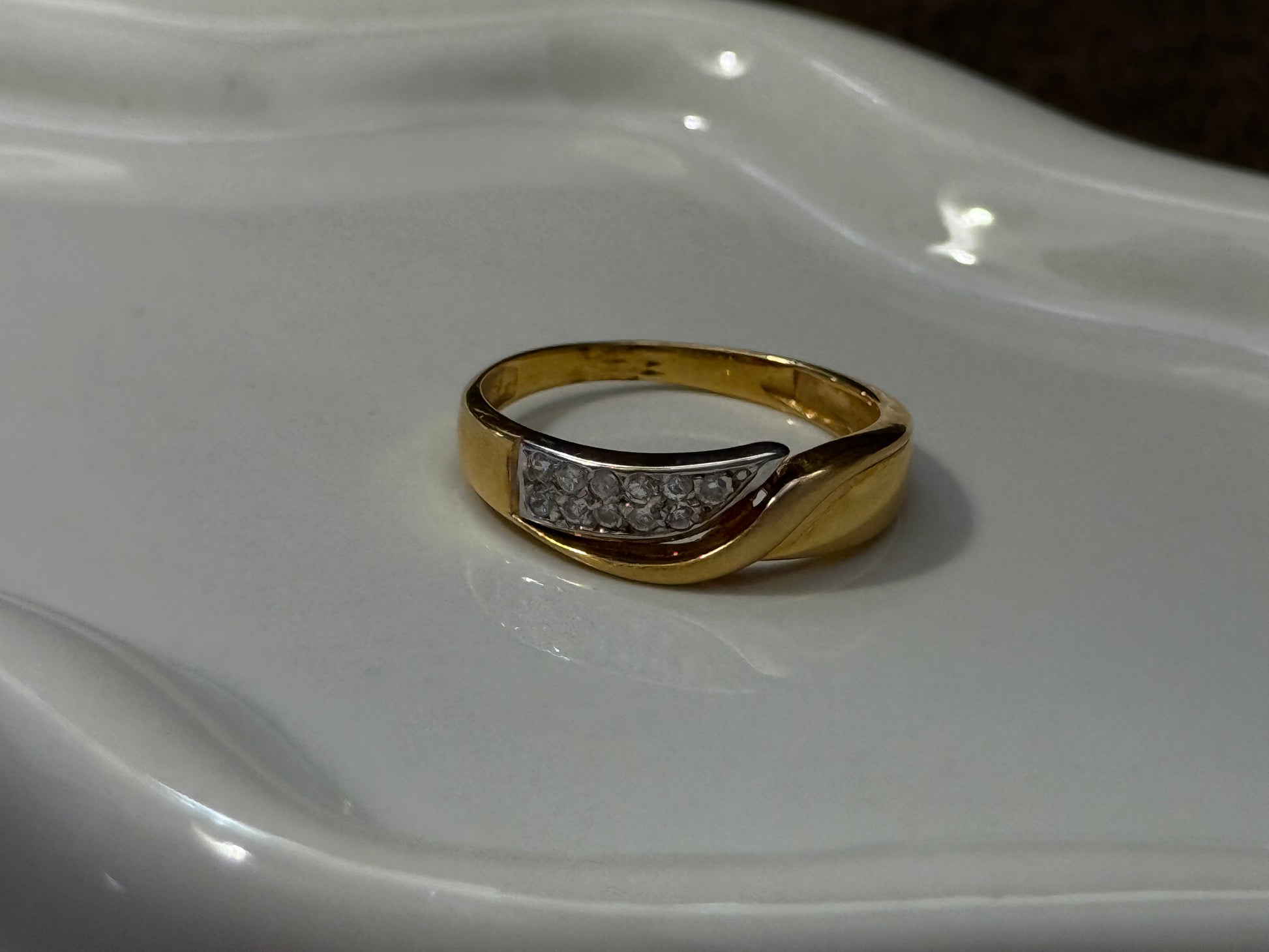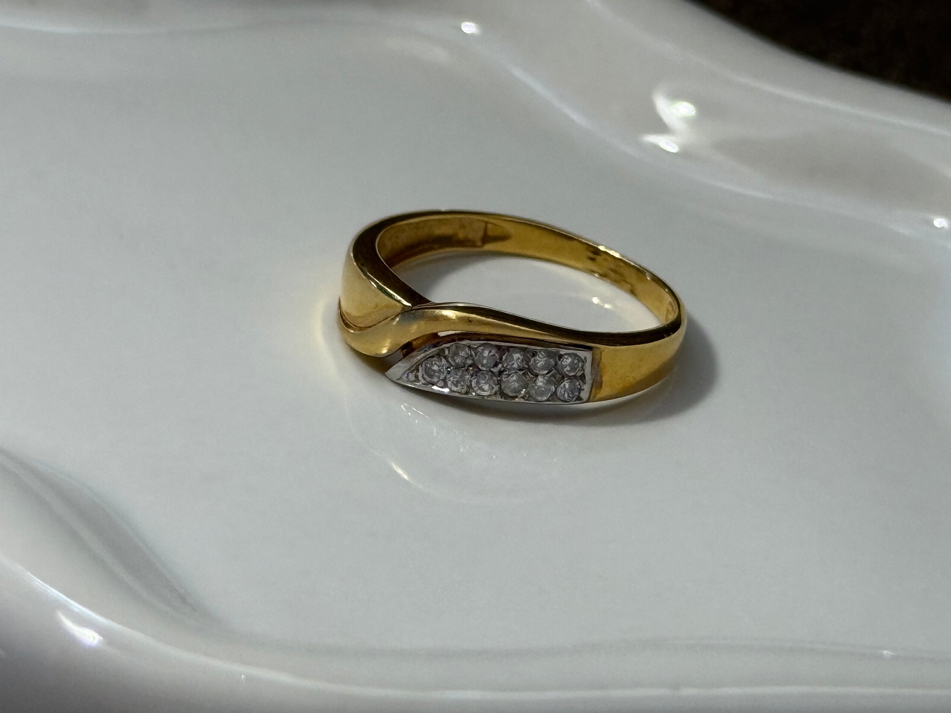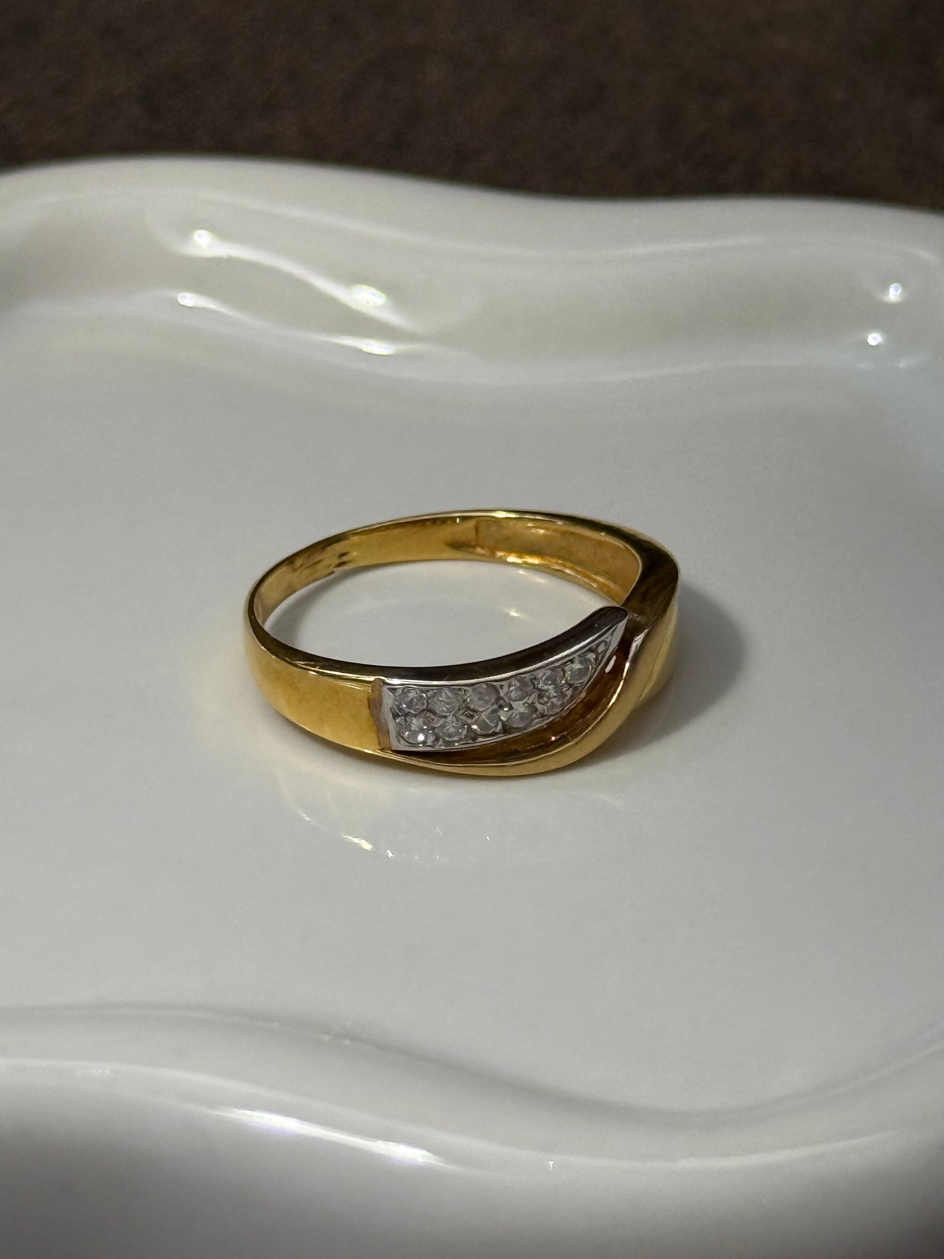 Este anel em ouro destaca-se pelo formato envolvente e pelo detalhe cravado em forma de gota, com pequenas pedras que adicionam brilho sem excessos. Uma peça harmoniosa e contemporânea, pensada para o dia a dia com um toque de distinção.