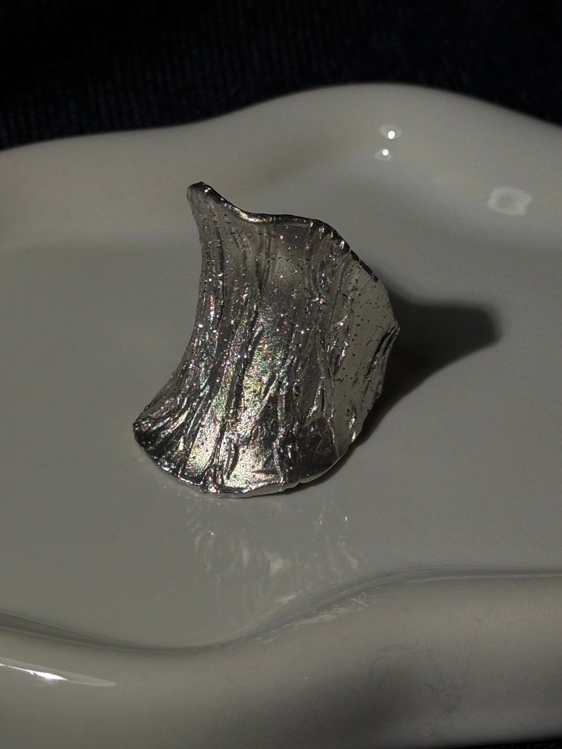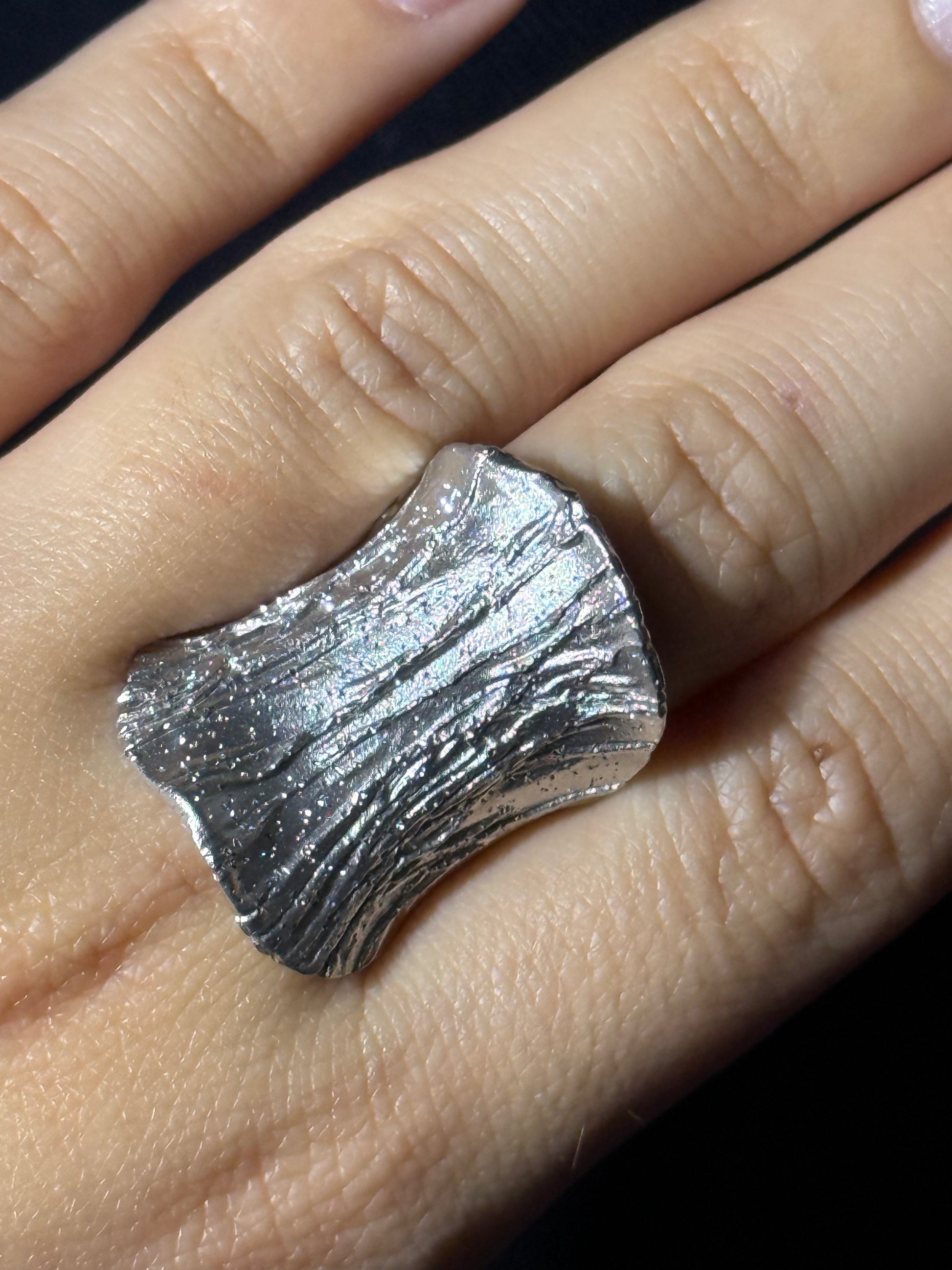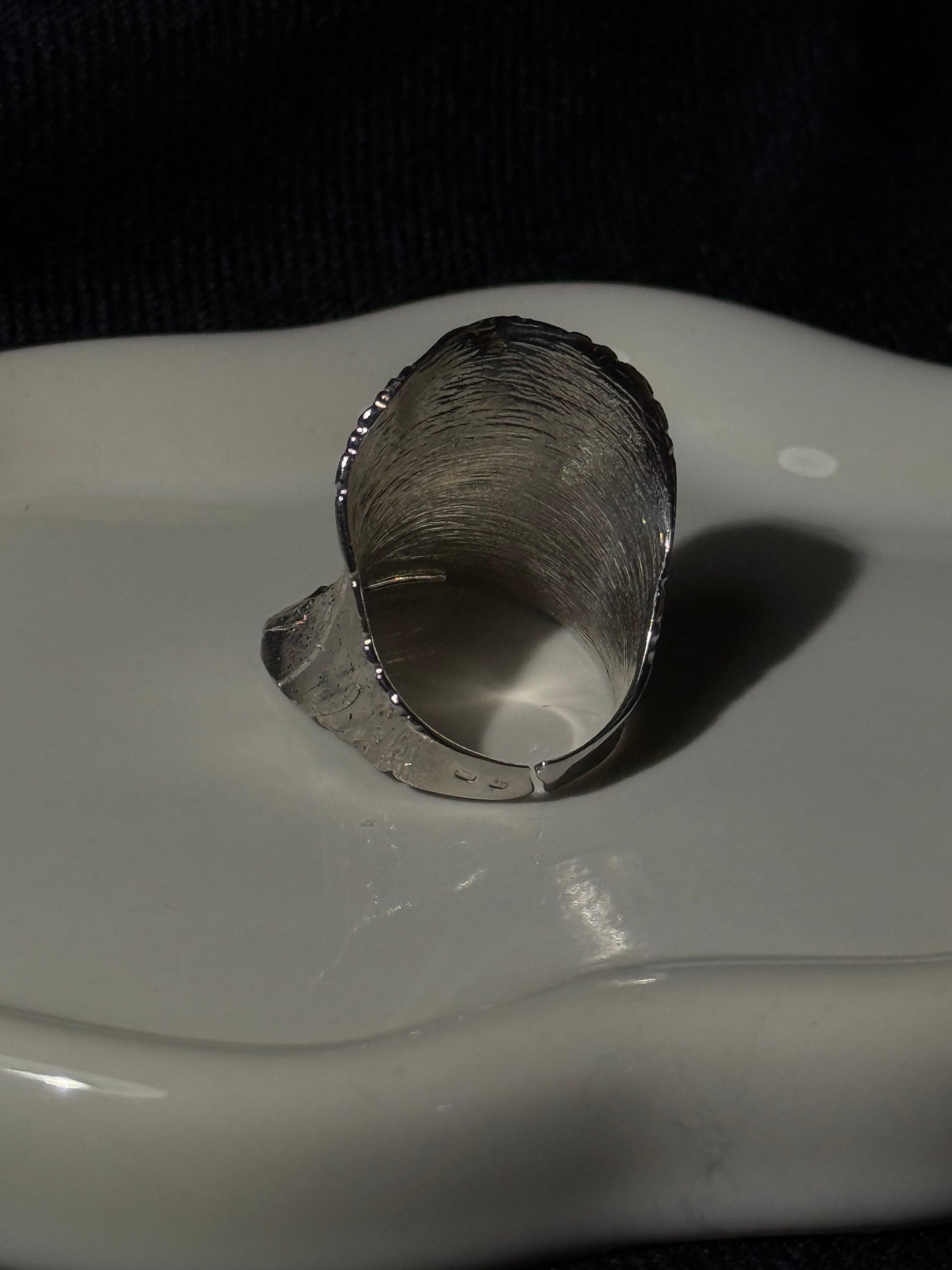 O Anel Neréia é feito em prata de lei e apresenta um design orgânico com textura profunda e brilho espelhado. O seu formato fluido e volumoso envolve o dedo com personalidade.