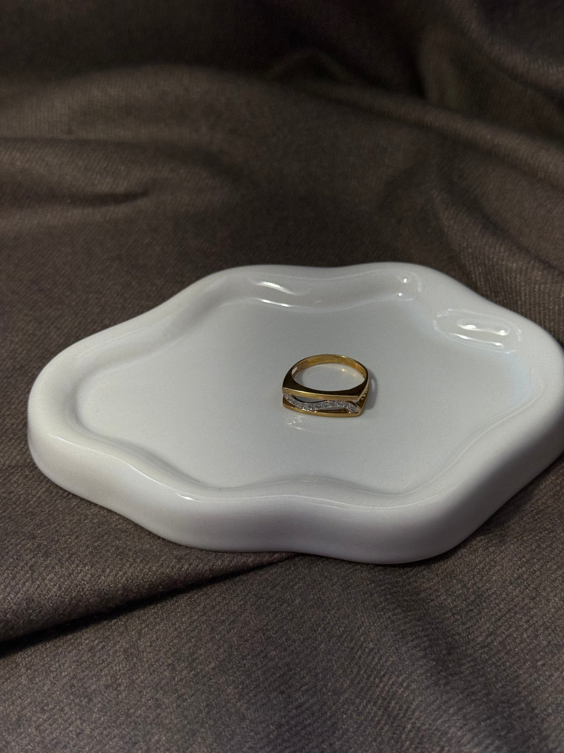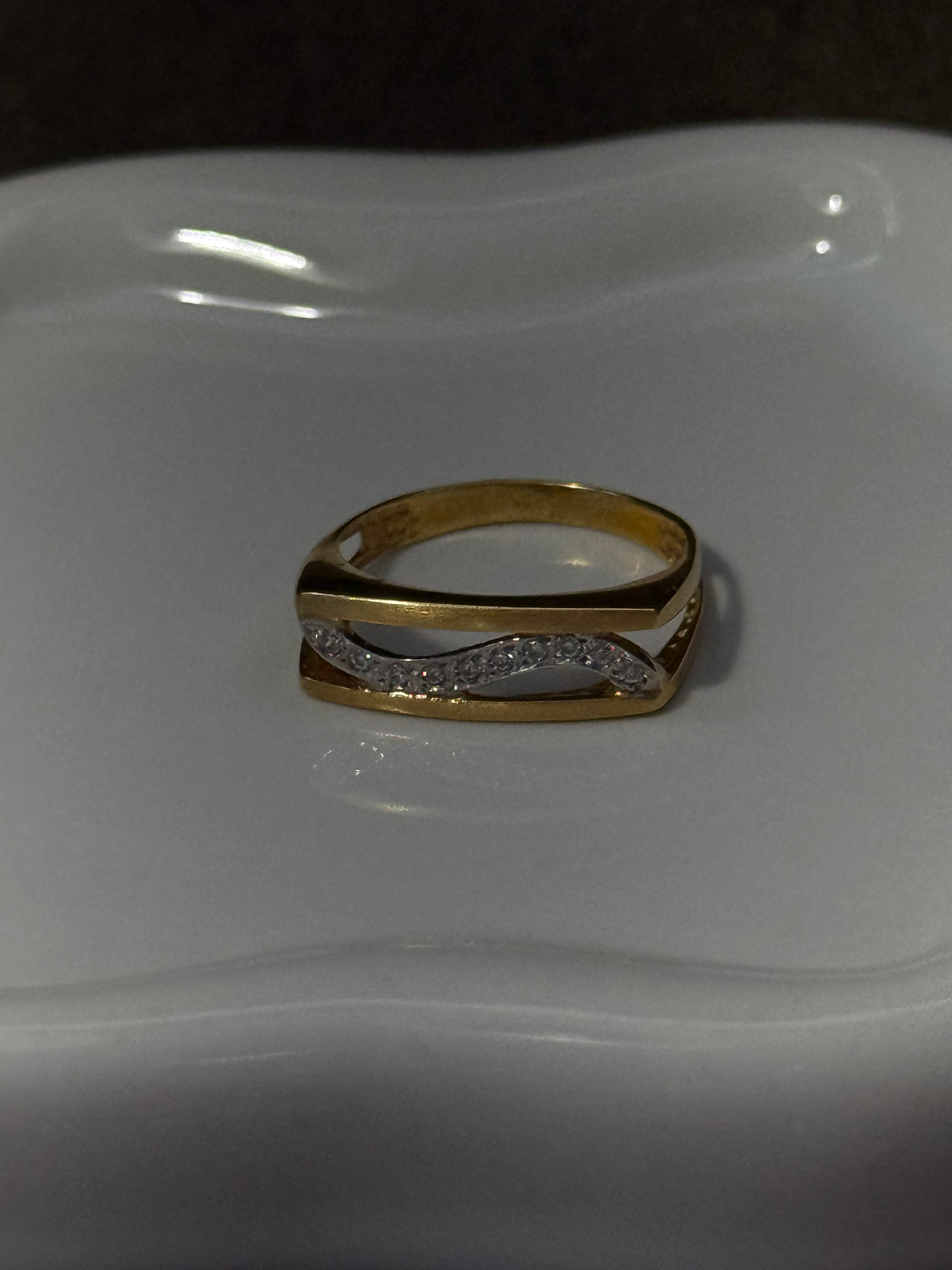 Este anel em ouro distingue-se pela abertura lateral e pela curva cravada de pequenas pedras, que acompanha delicadamente o movimento da peça. Um modelo fluido e moderno, ideal para quem prefere sofisticação com leveza.