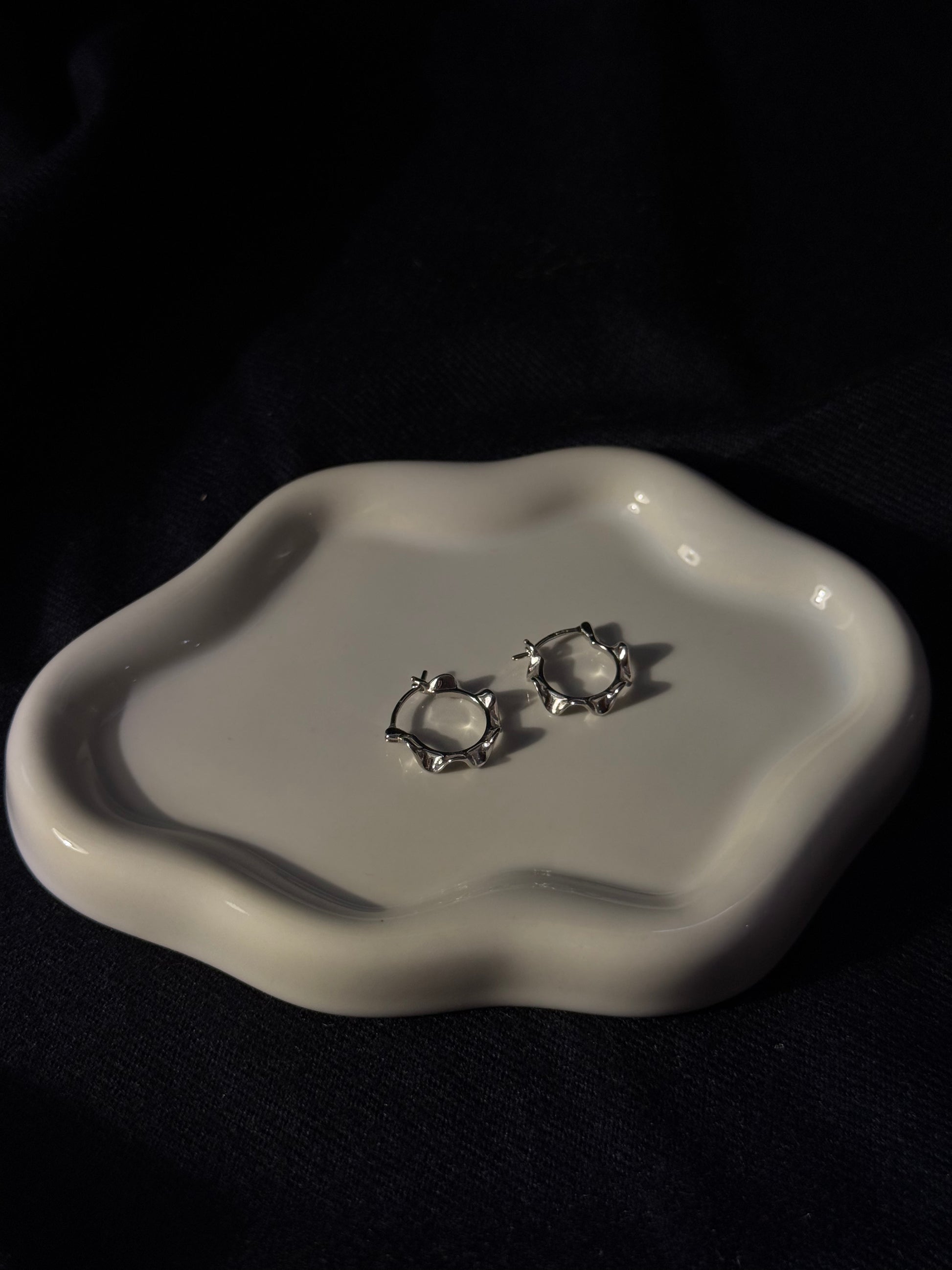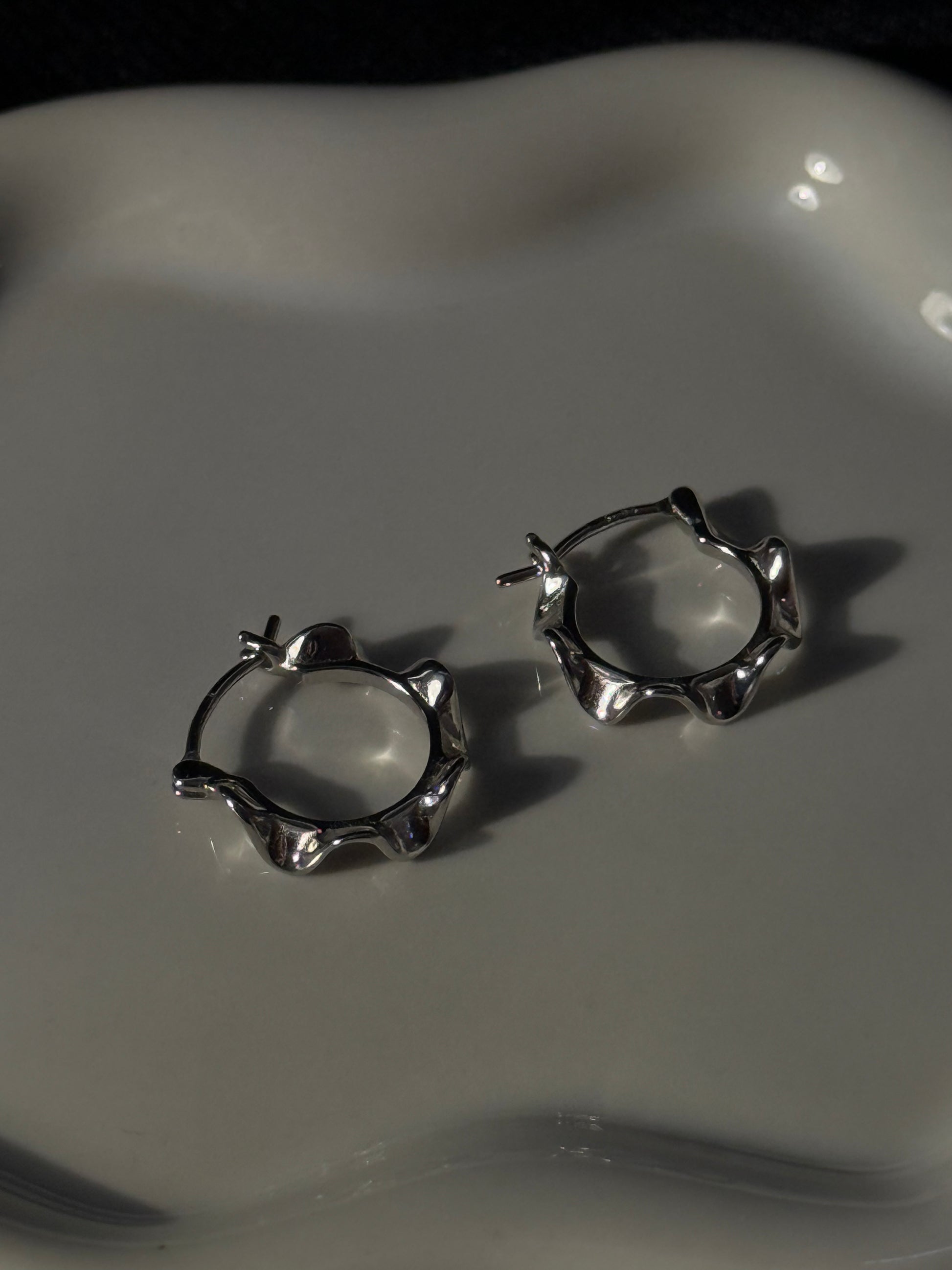 As Ondina destacam-se pelo seu contorno orgânico, com curvas suaves que evocam a dança da água ao luar. Feitas em prata, são uma interpretação contemporânea das clássicas argolas, ideais para quem aprecia formas fluidas e sofisticação subtil.