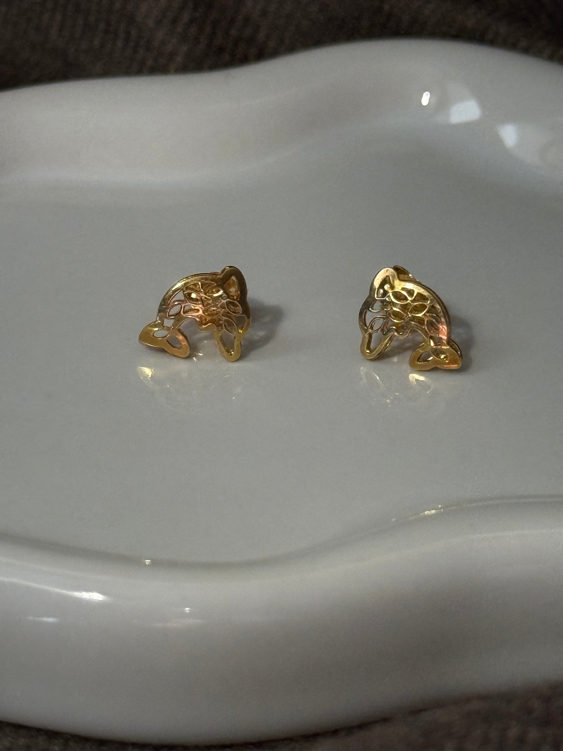 Estes brincos em ouro representam um golfinho desenhado com traços leves como se fossem esculpidos à mão. Uma peça divertida mas cheia de textura, pensada para quem gosta de ícones com alma e um toque artístico.