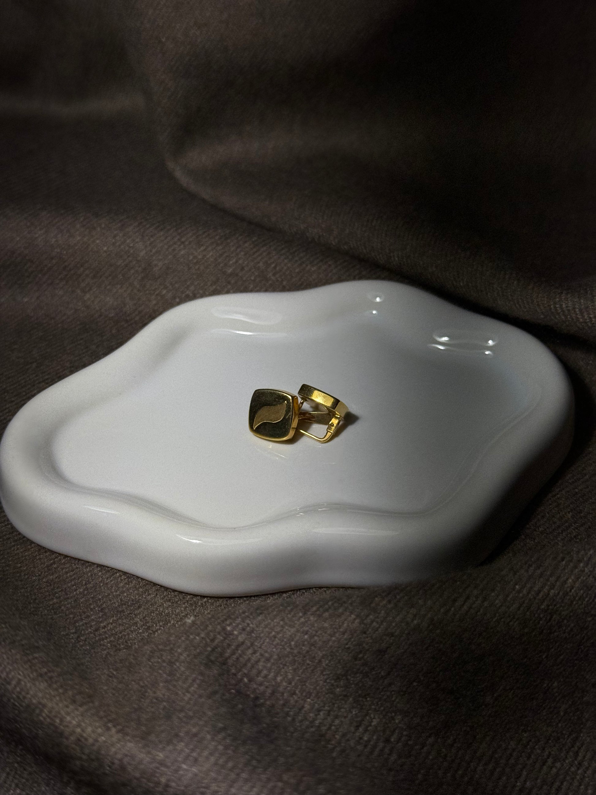 Este brinco em ouro apresenta um design compacto e escultural, com linhas curvas que evocam movimento e fluidez. O contraste subtil entre o brilho polido e o acabamento texturado cria uma presença delicada, mas firme. Ideal para quem aprecia o detalhe no essencial.