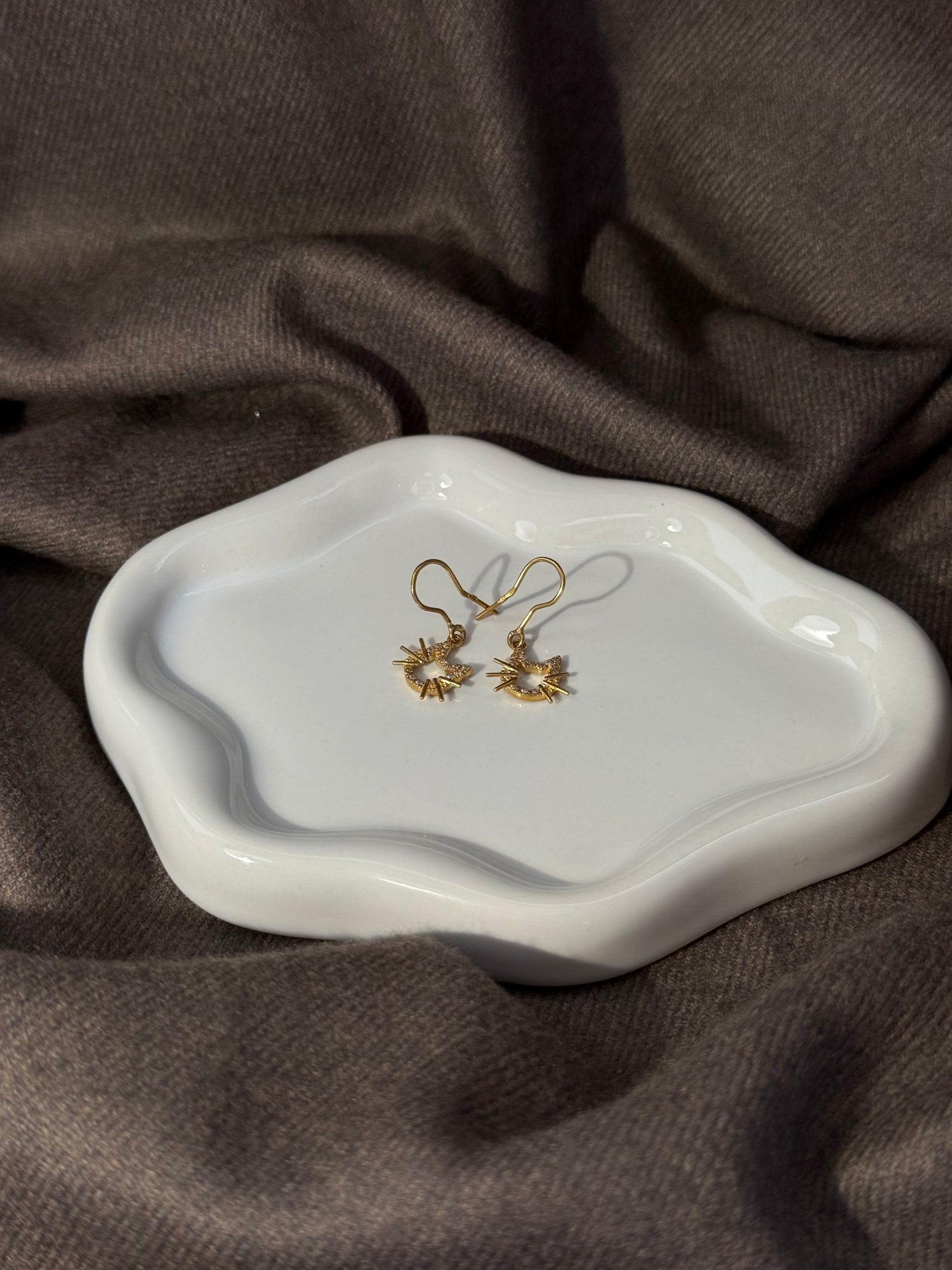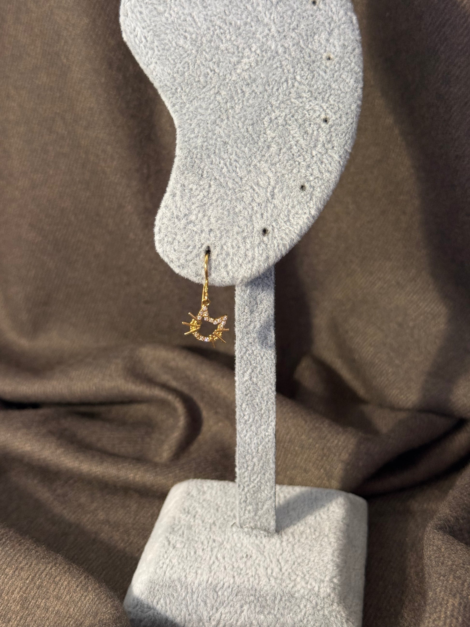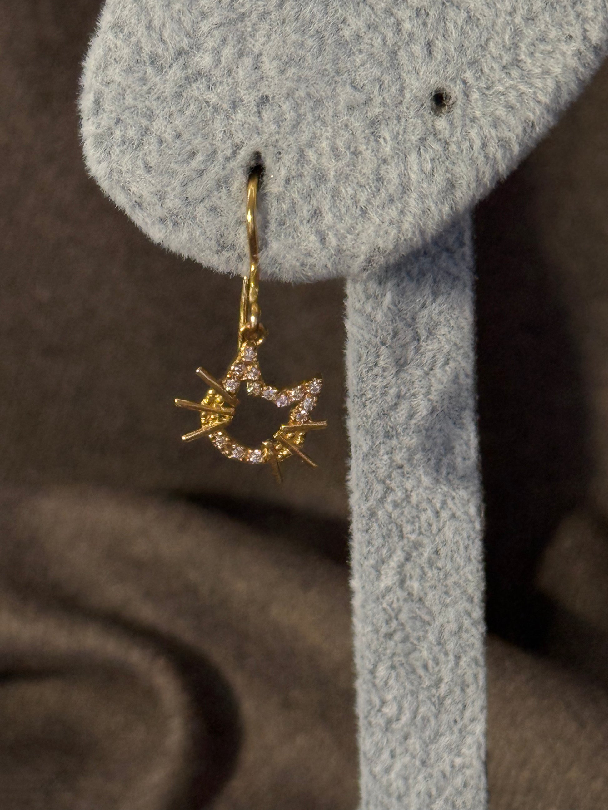 Estes brincos em ouro reinterpretam uma silhueta felina mais famosa da nossa infância cheia de atitude. O pavê de zircónias e os detalhes criam um contraste inesperado, tornando a peça divertida, mas com presença. Para quem gosta de jóias com piscar de olho.