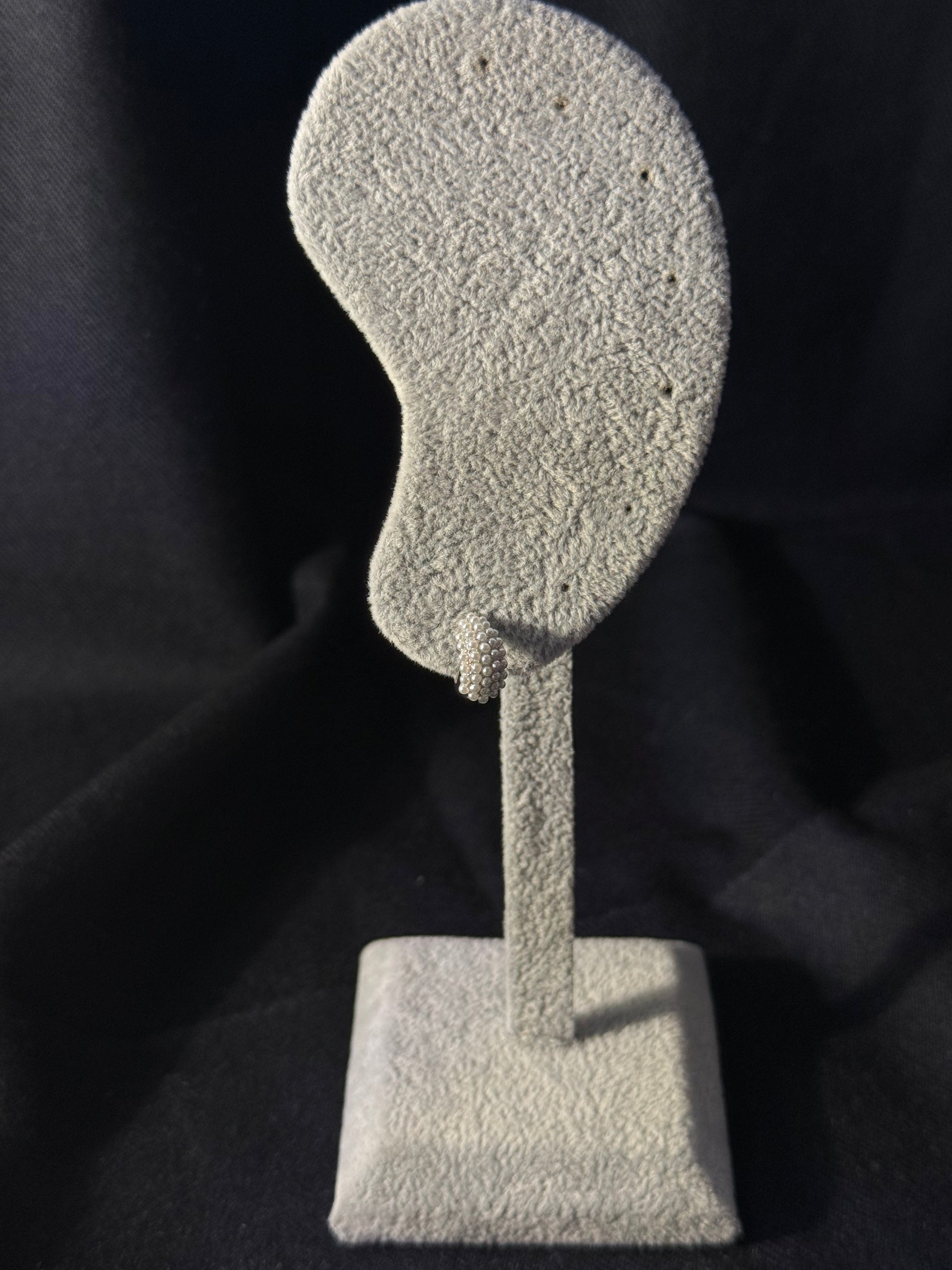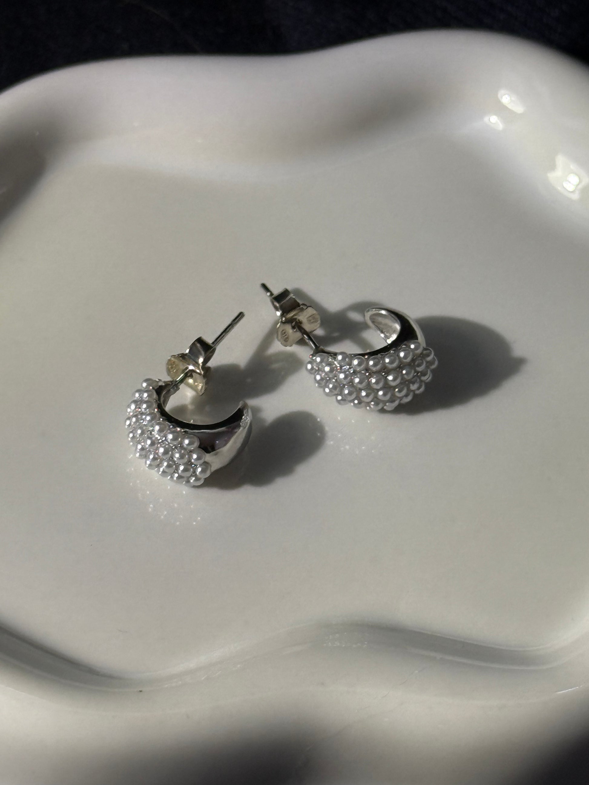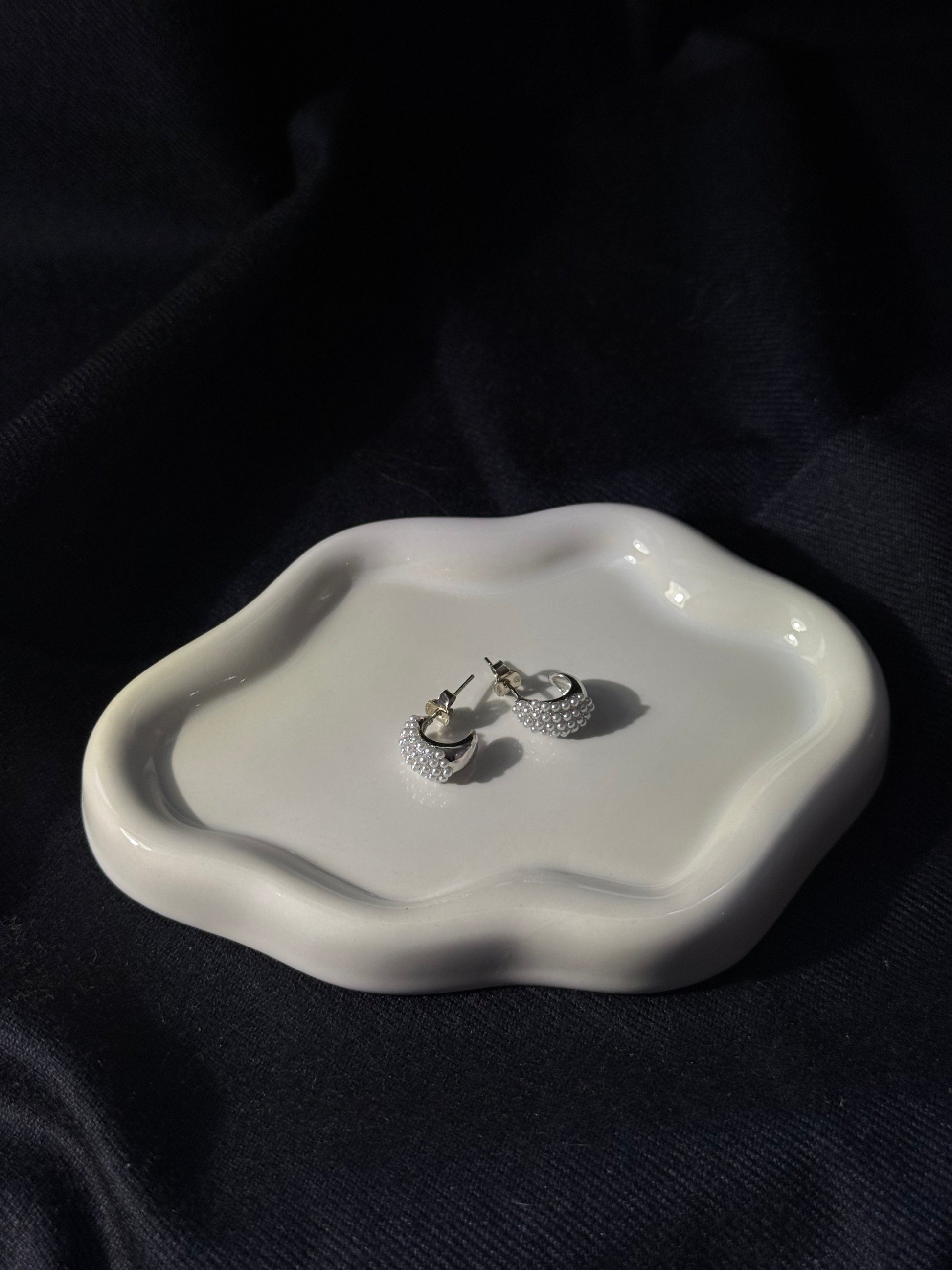 Os Brincos Orbe destacam-se pela sua textura escultural, onde micropérolas parecem orbitar num relevo elegante e moderno. Uma peça de presença subtil mas ousada, ideal para elevar qualquer look com sofisticação.