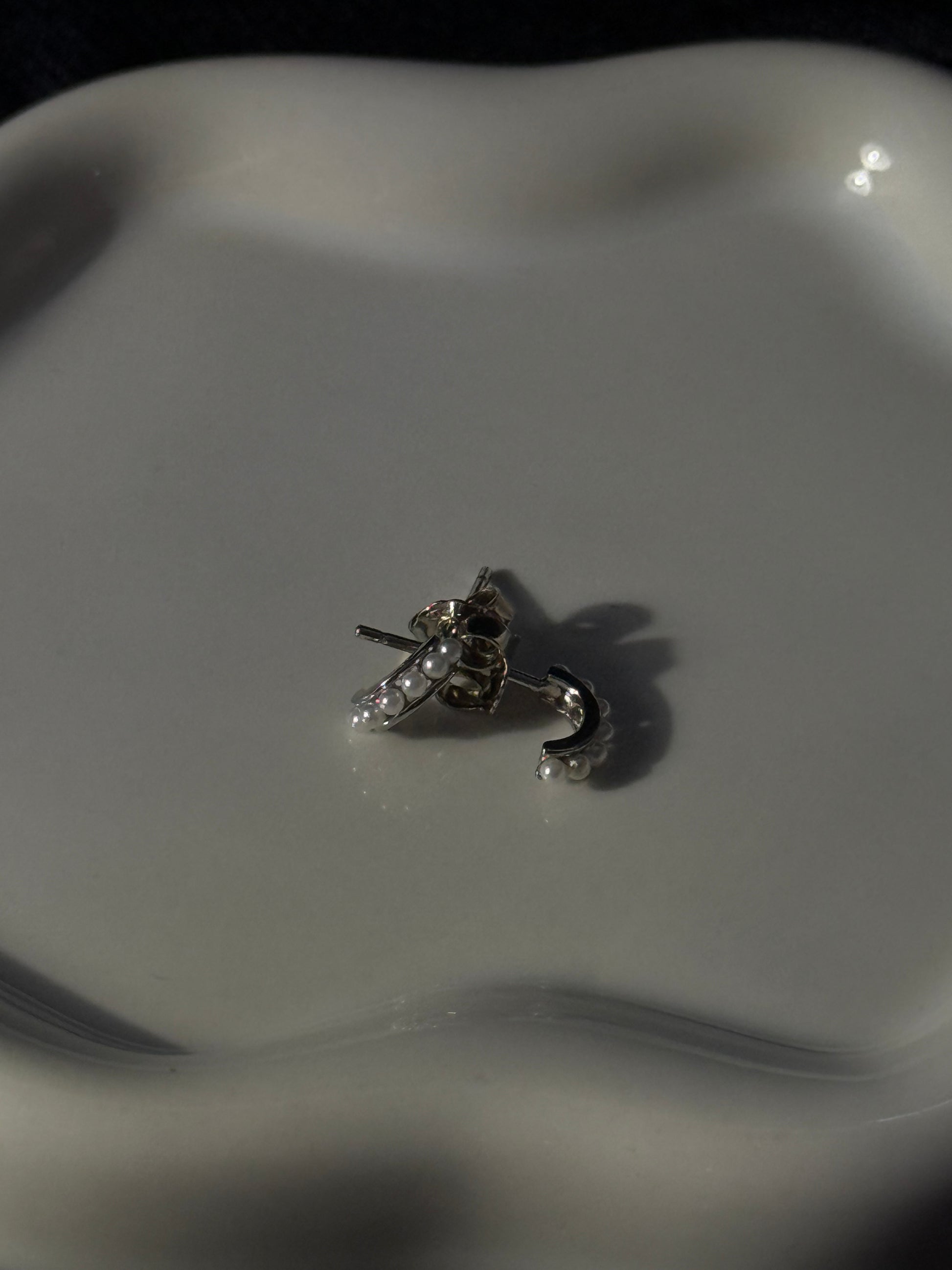 Os brincos Perla Luna são uma celebração da delicadeza - com pérolas alinhadas sobre prata, evocam a luminosidade tranquila da lua com requinte. A sua forma curva envolve a orelha com subtileza, criando um equilíbrio perfeito entre o clássico e o contemporâneo.