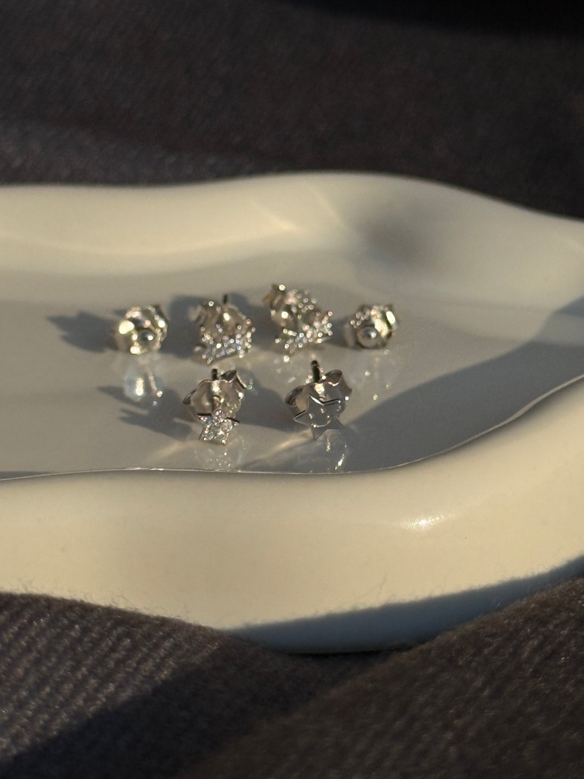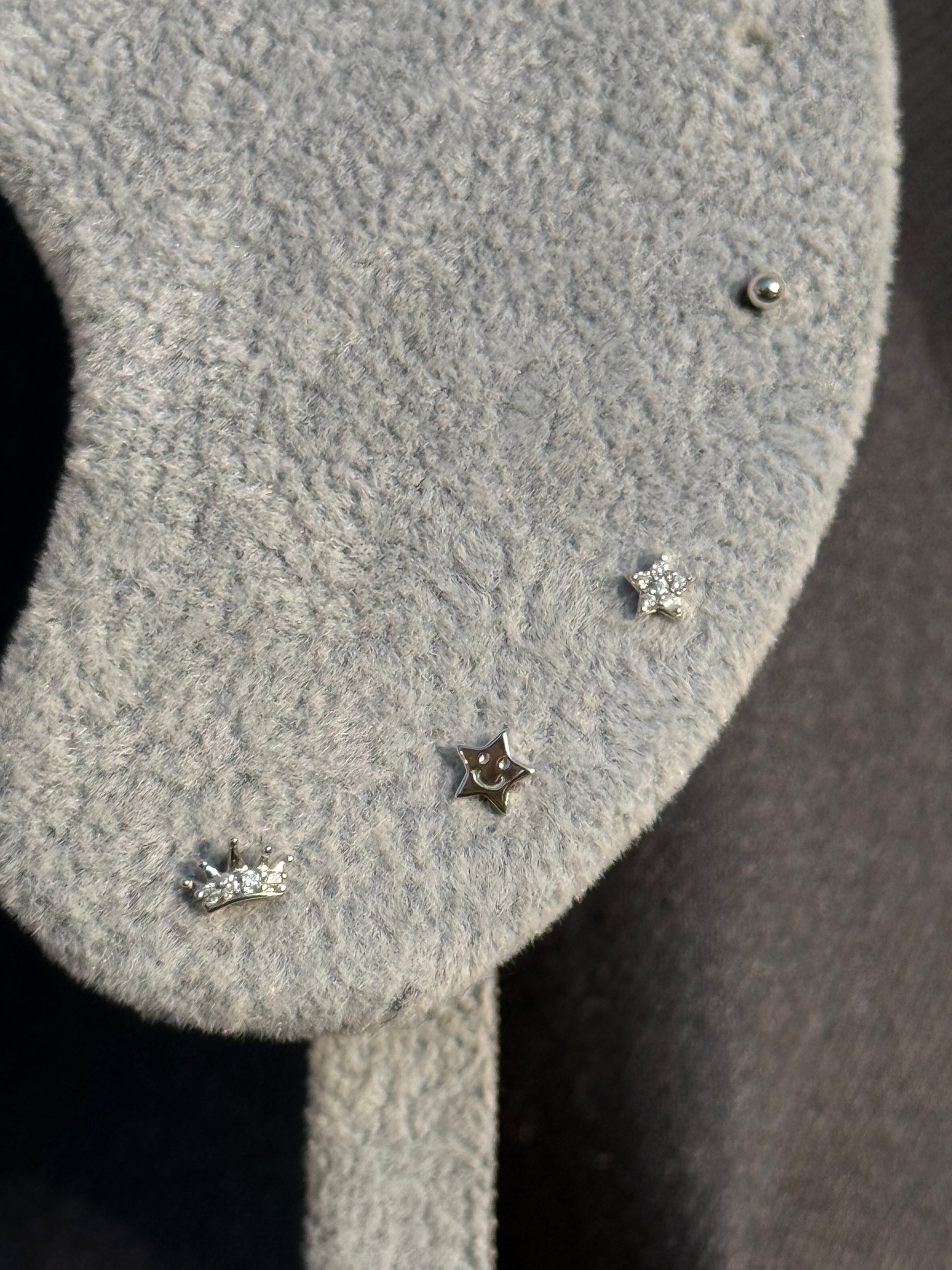 Este conjunto em prata reúne formas distintas – da estrela sorridente à coroa cravejada, passando pela estrela delicada e o ponto de luz minimalista. Criados para serem usados de forma combinada em múltiplos furos ou individualmente, oferecem liberdade criativa sem perder o tom sofisticado. Uma seleção versátil e contemporânea, perfeita para quem gosta de expressar a sua identidade com detalhes luxuosos.