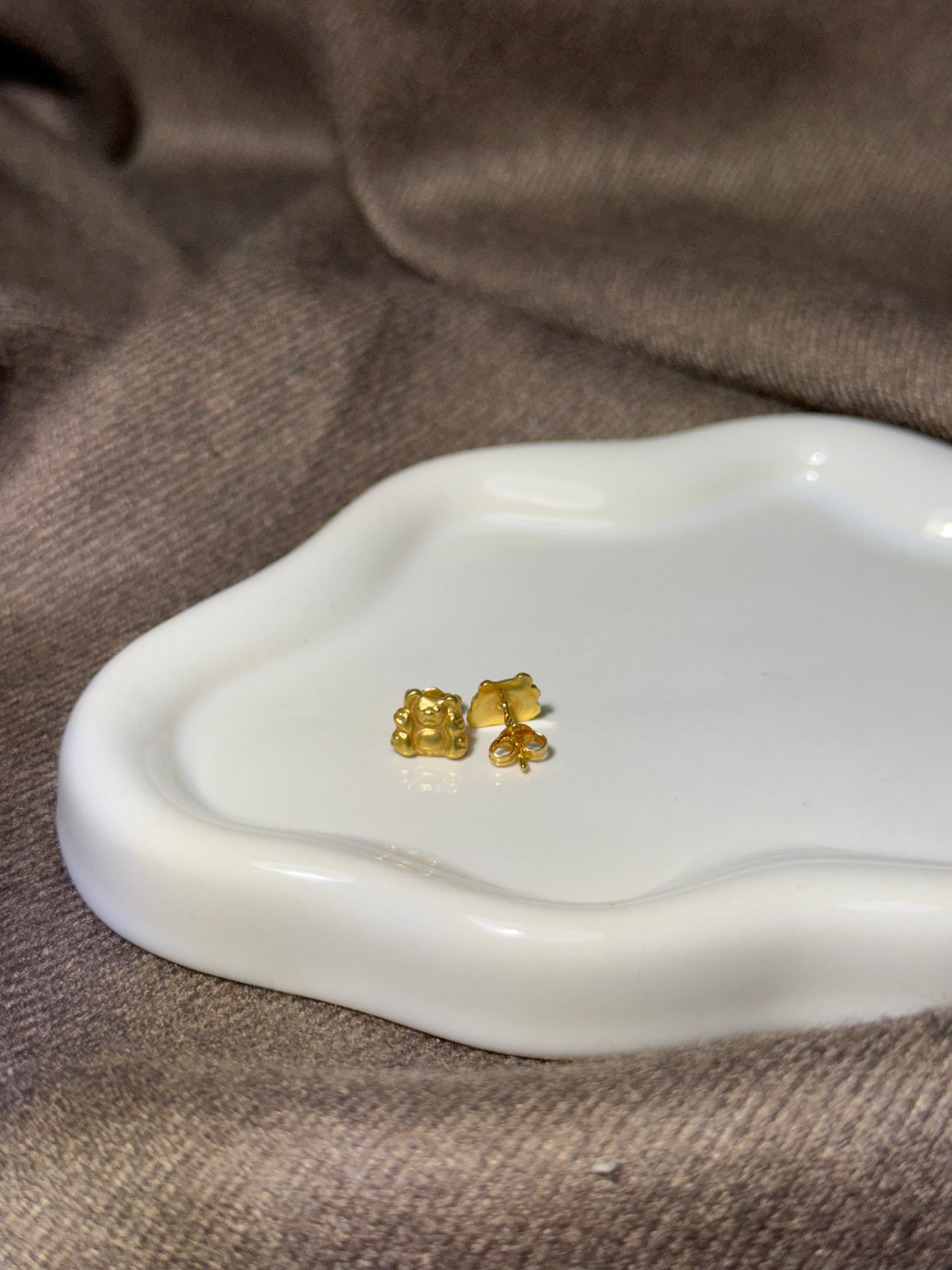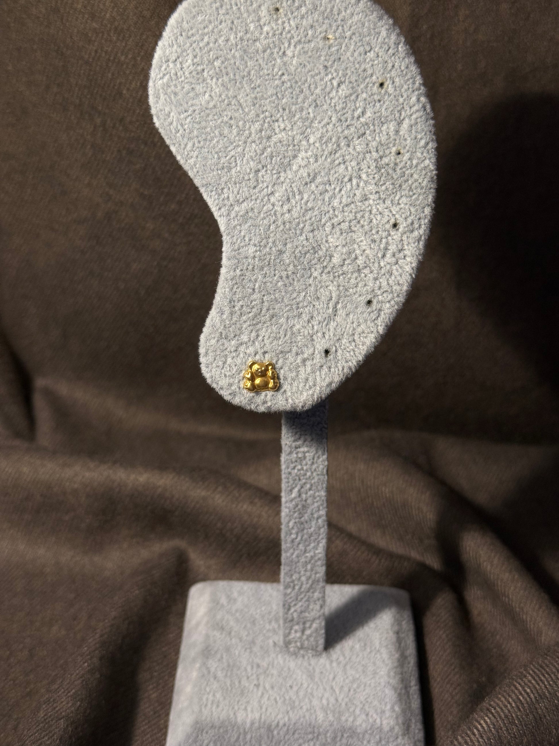 Com um relevo marcante e formas arredondadas, estes brincos em ouro reinventam o clássico ursinho com mais força e densidade. Uma peça de carácter lúdico, mas com imponência para quem gosta de brincar com símbolos, sem perder o impacto visual.