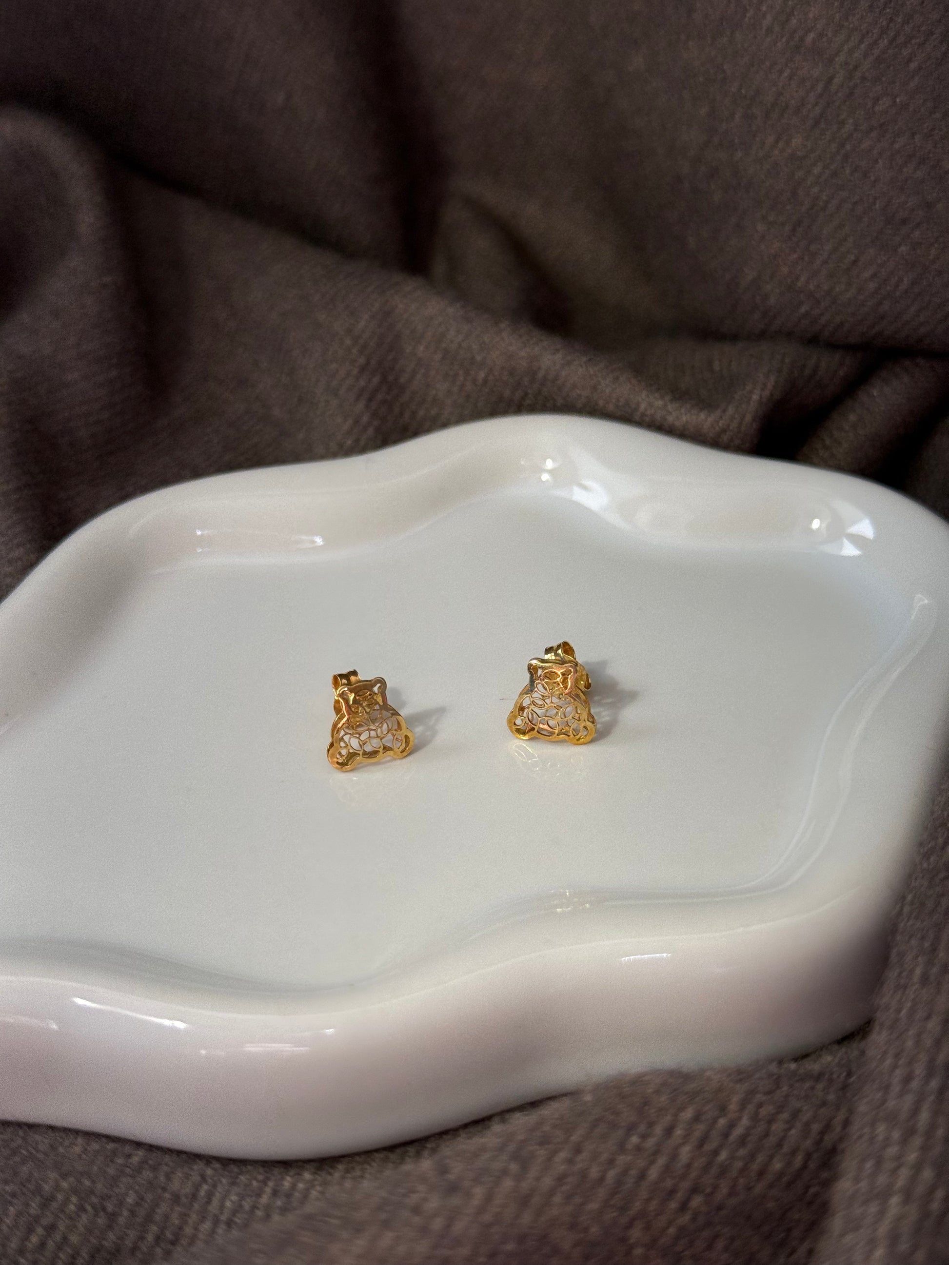 Em ouro trabalhado, estes brincos em forma de urso unem delicadeza e significado. O urso, guardião da natureza, representa coragem, proteção e amor incondicional — um detalhe especial com ternura e simbolismo.