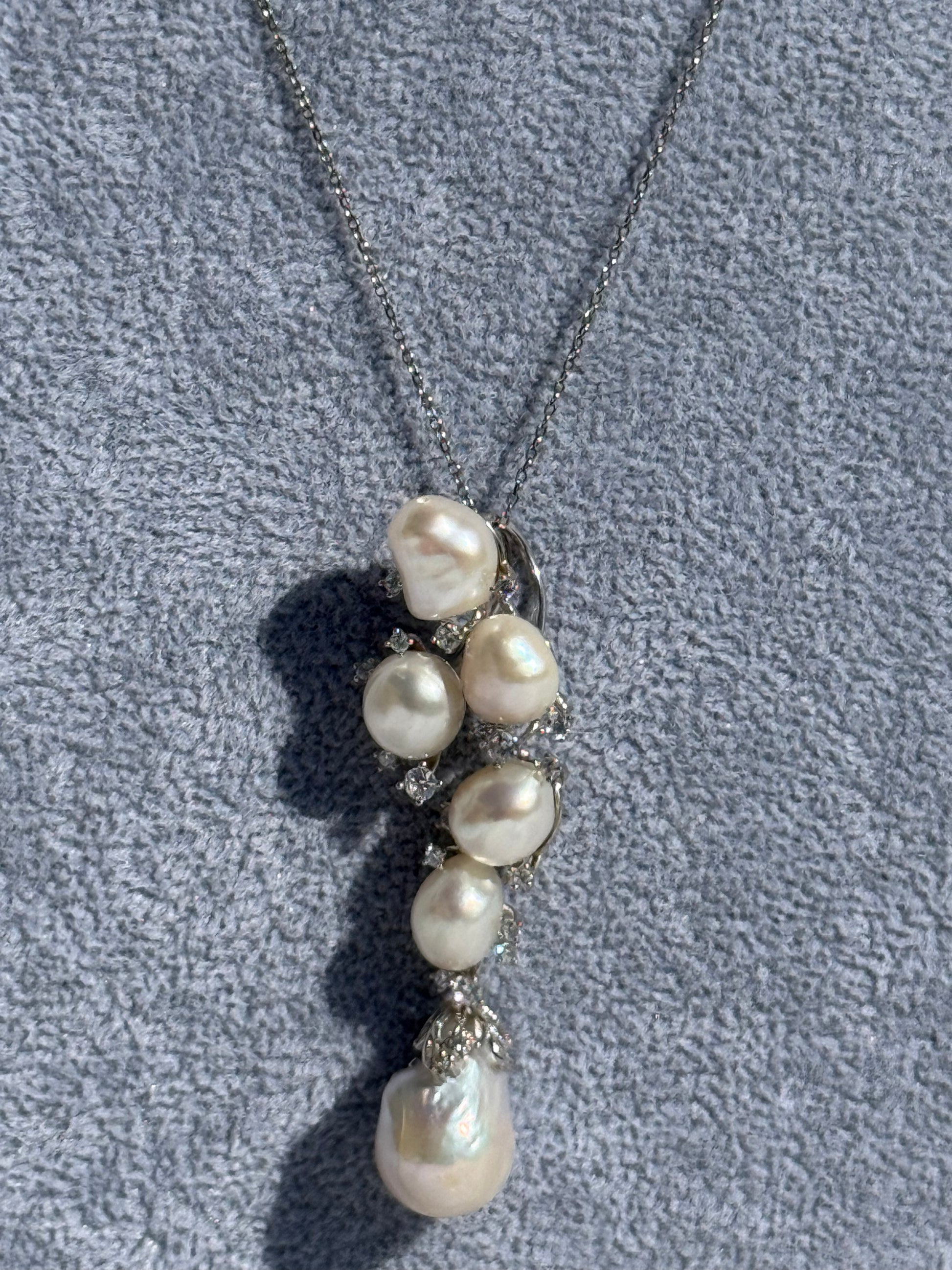 Este colar em prata combina a delicadeza das pérolas com o brilho discreto das zircónias, criando um pendente com movimento e textura. Um detalhe elegante e feminino, pensado para acompanhar a noiva com suavidade e graça no dia do seu casamento.