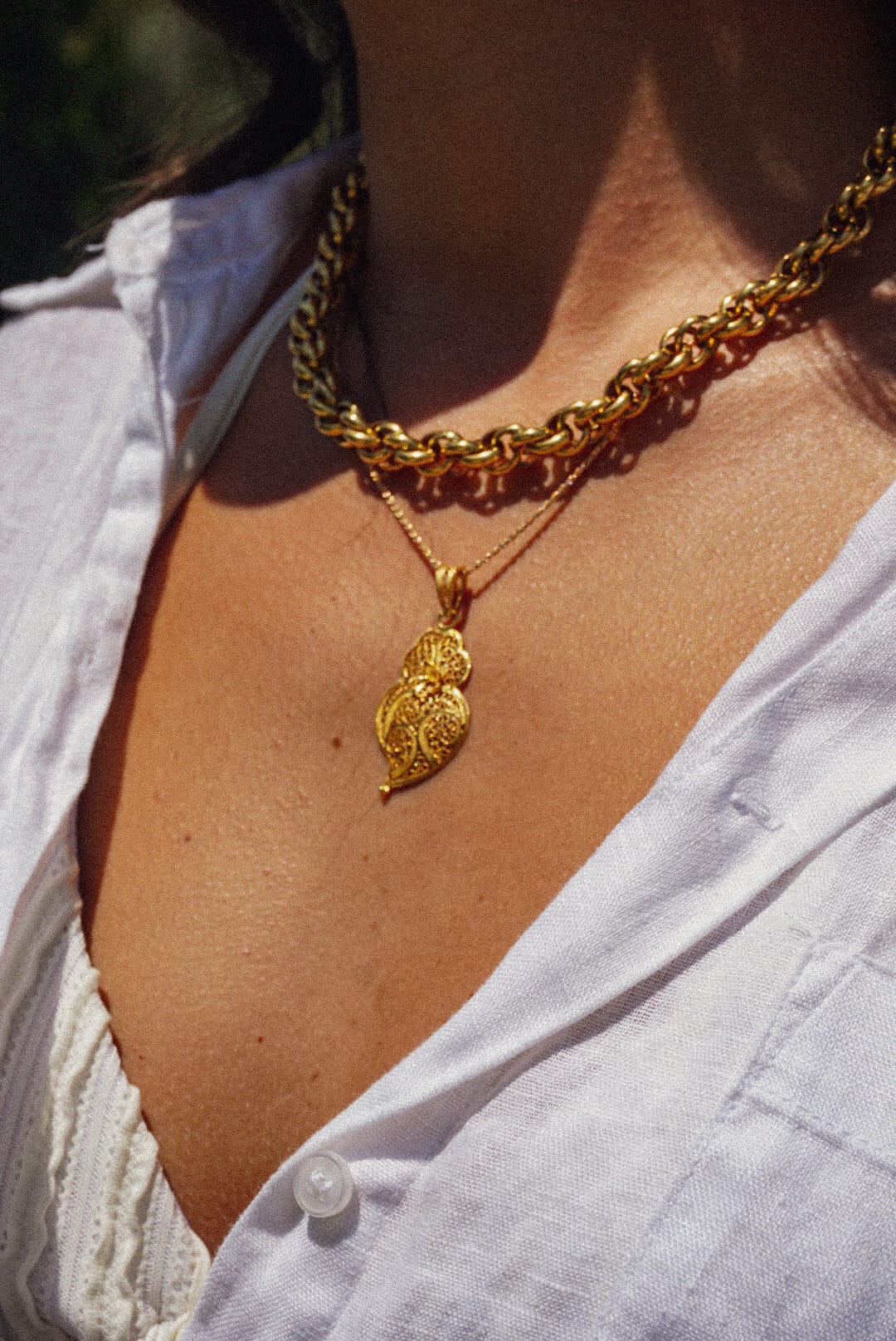 A fazer par com um cordão em ouro.