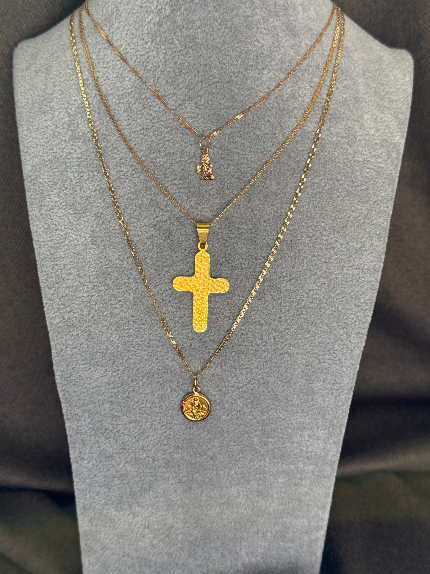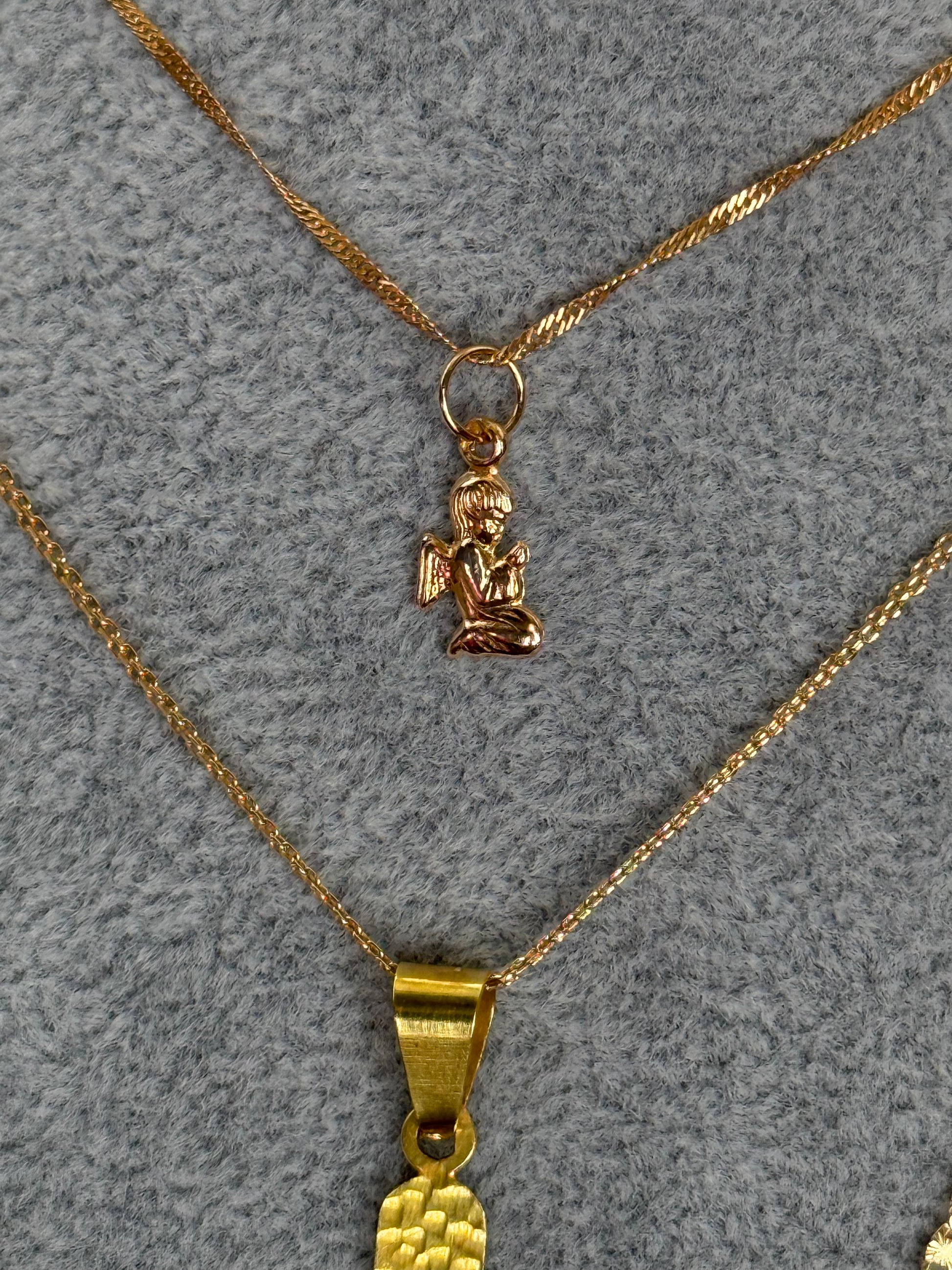 Este pendente em ouro representa um anjo da guarda delicadamente esculpido, num gesto sereno e protetor. Uma peça simbólica e discreta, pensada para acompanhar com leveza e significado quem o usa. Se gostou desta opção, procure pelas versões II e III.