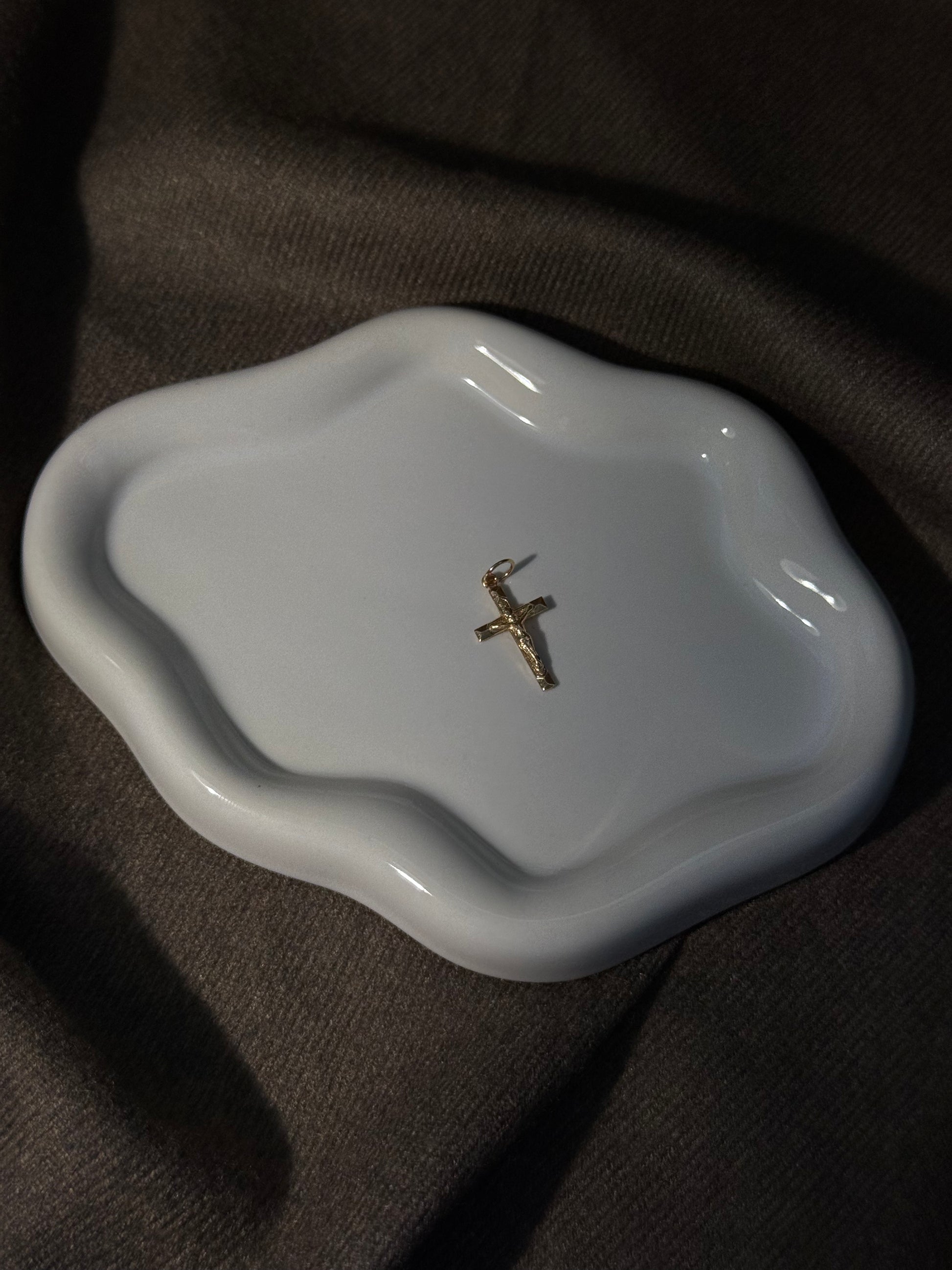 Pendente em ouro com a Cruz de Cristo esculpida em relevo, símbolo de fé, identidade e história. Uma peça com raízes profundas na alma portuguesa, feita para quem carrega valores antigos com elegância contemporânea. Para uma opção ligeiramente maior, procure pelo Pendente Lus II.