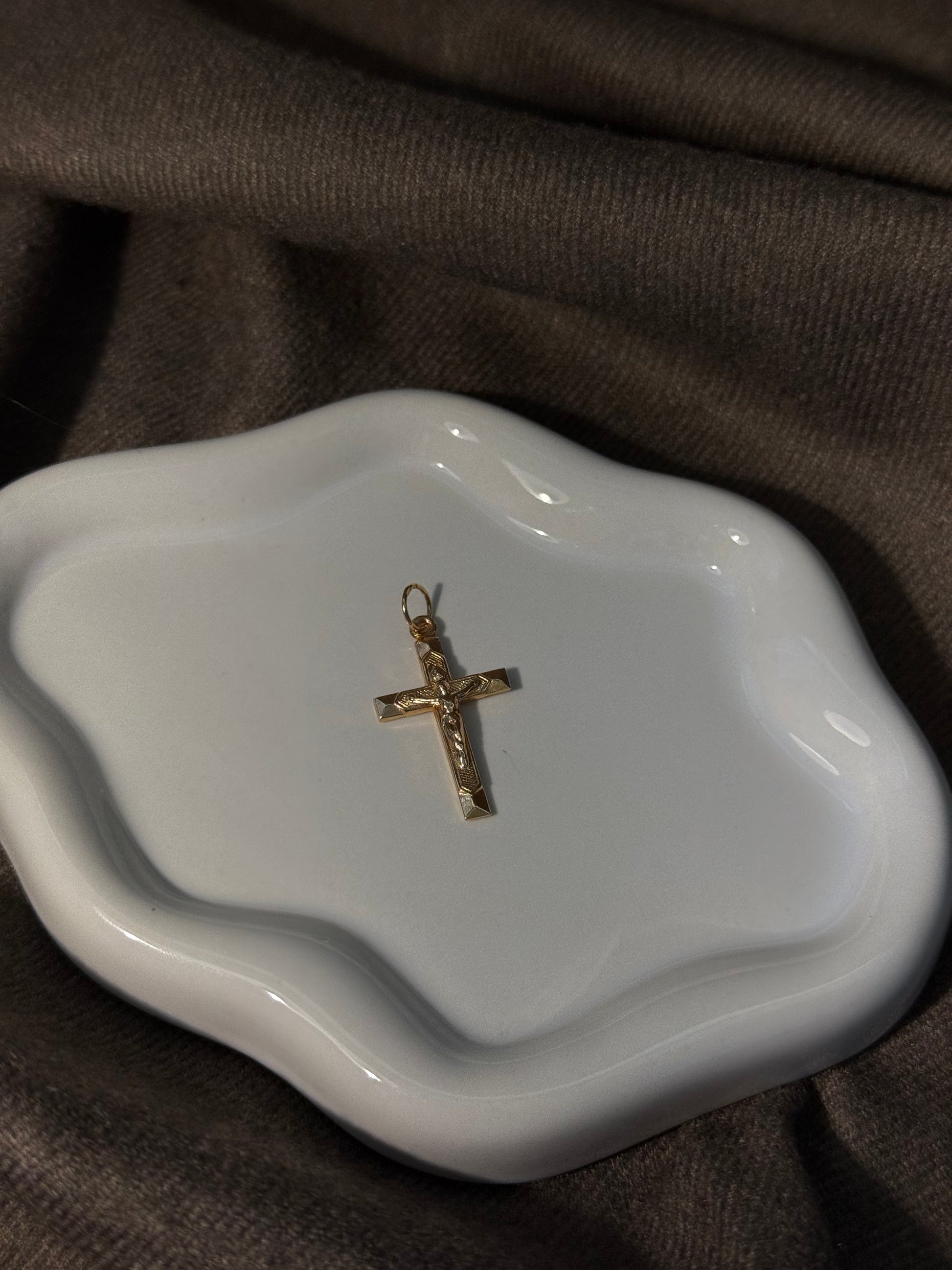 Pendente em ouro com a Cruz de Cristo esculpida em relevo, símbolo de fé, identidade e história. Uma peça com raízes profundas na alma portuguesa, feita para quem carrega valores antigos com elegância contemporânea. Para uma opção ligeiramente mais pequena, procure pelo Pendente Lus I.