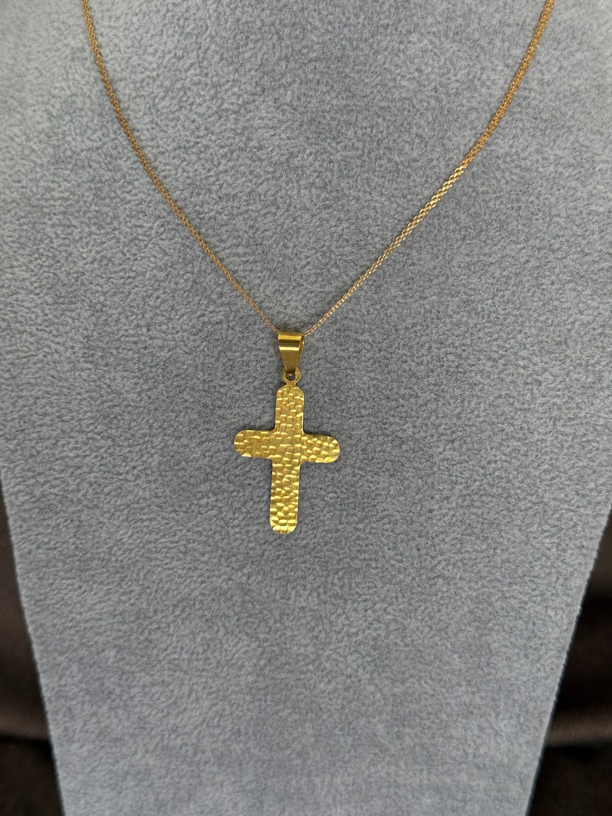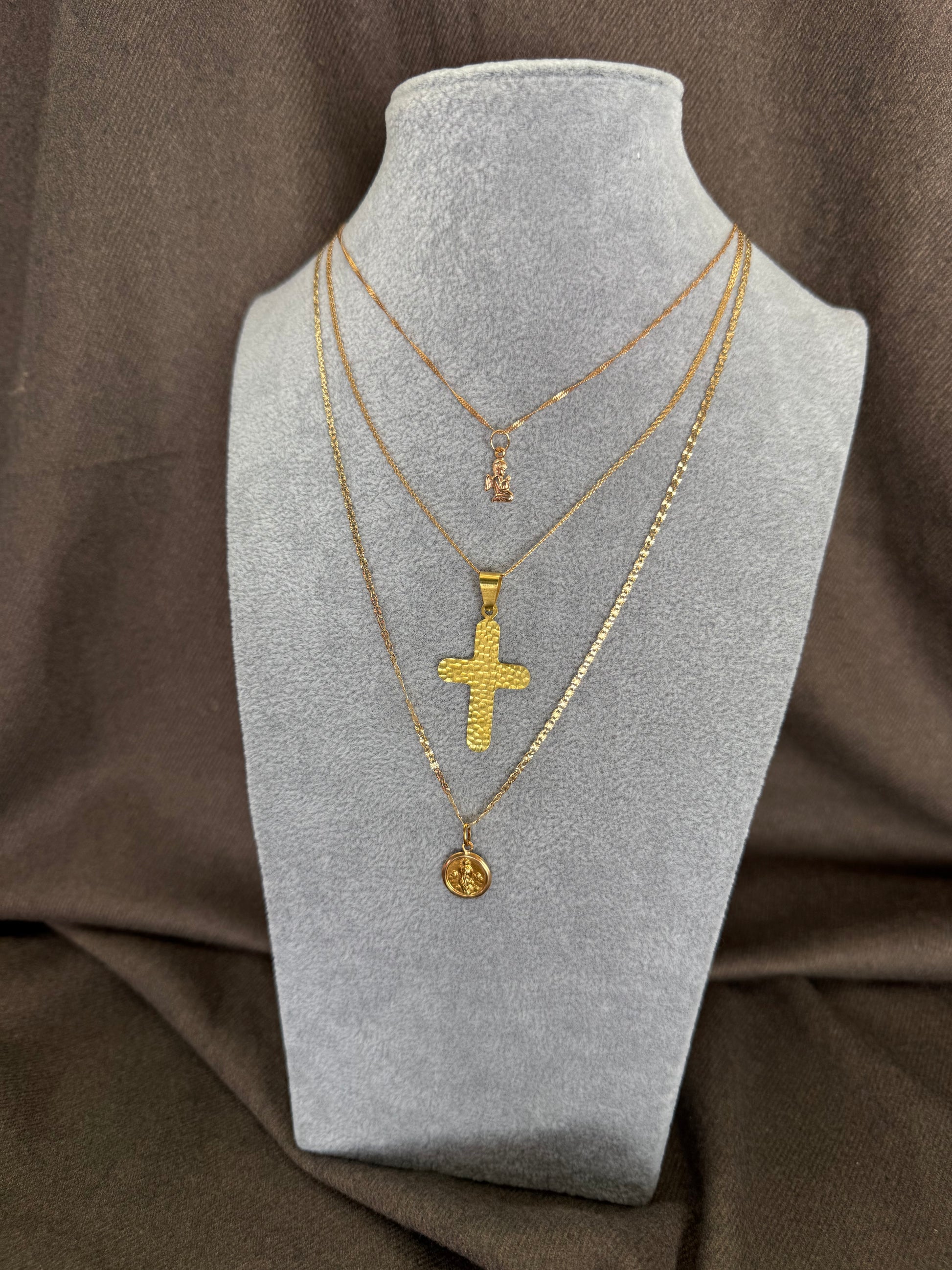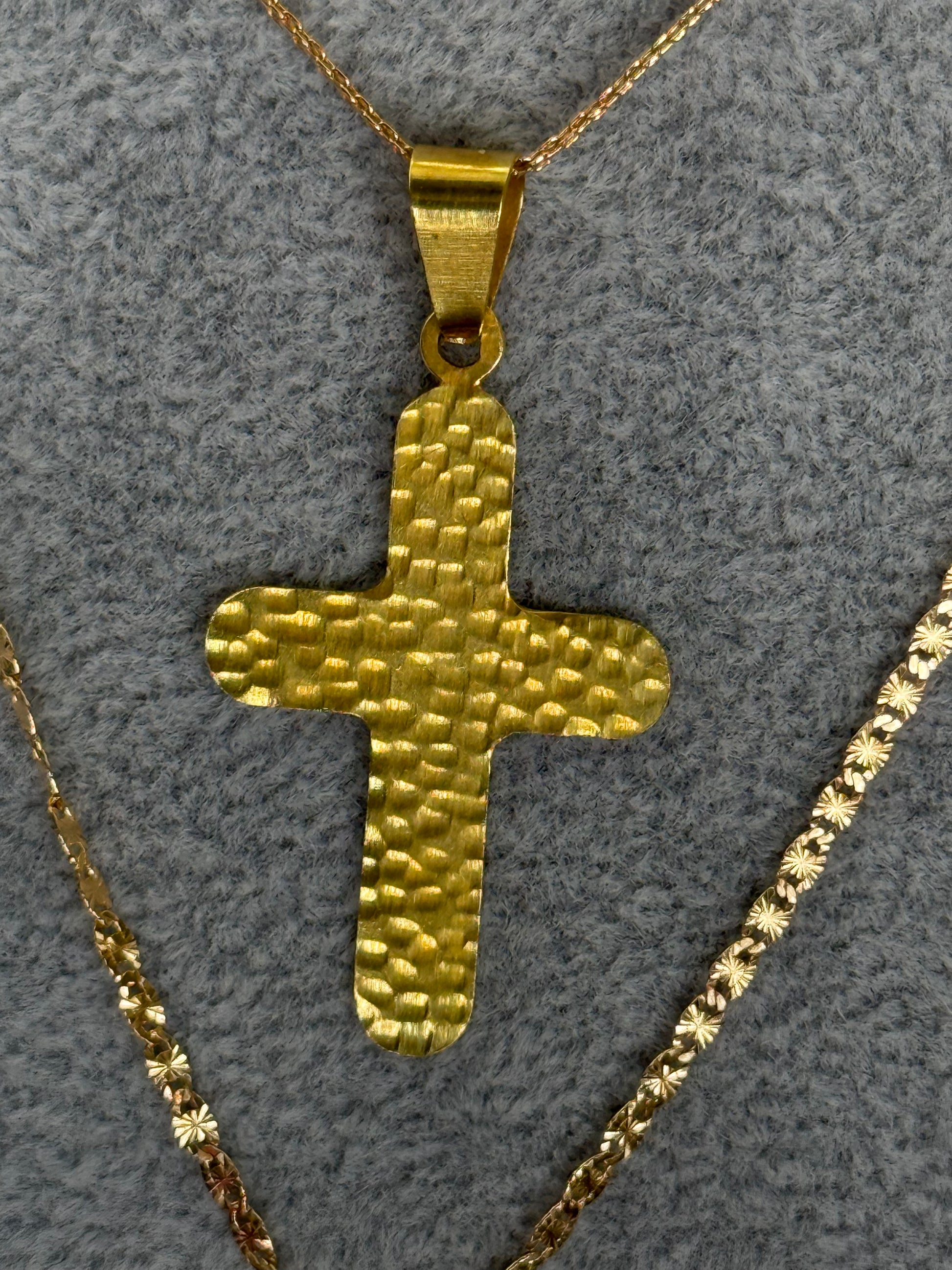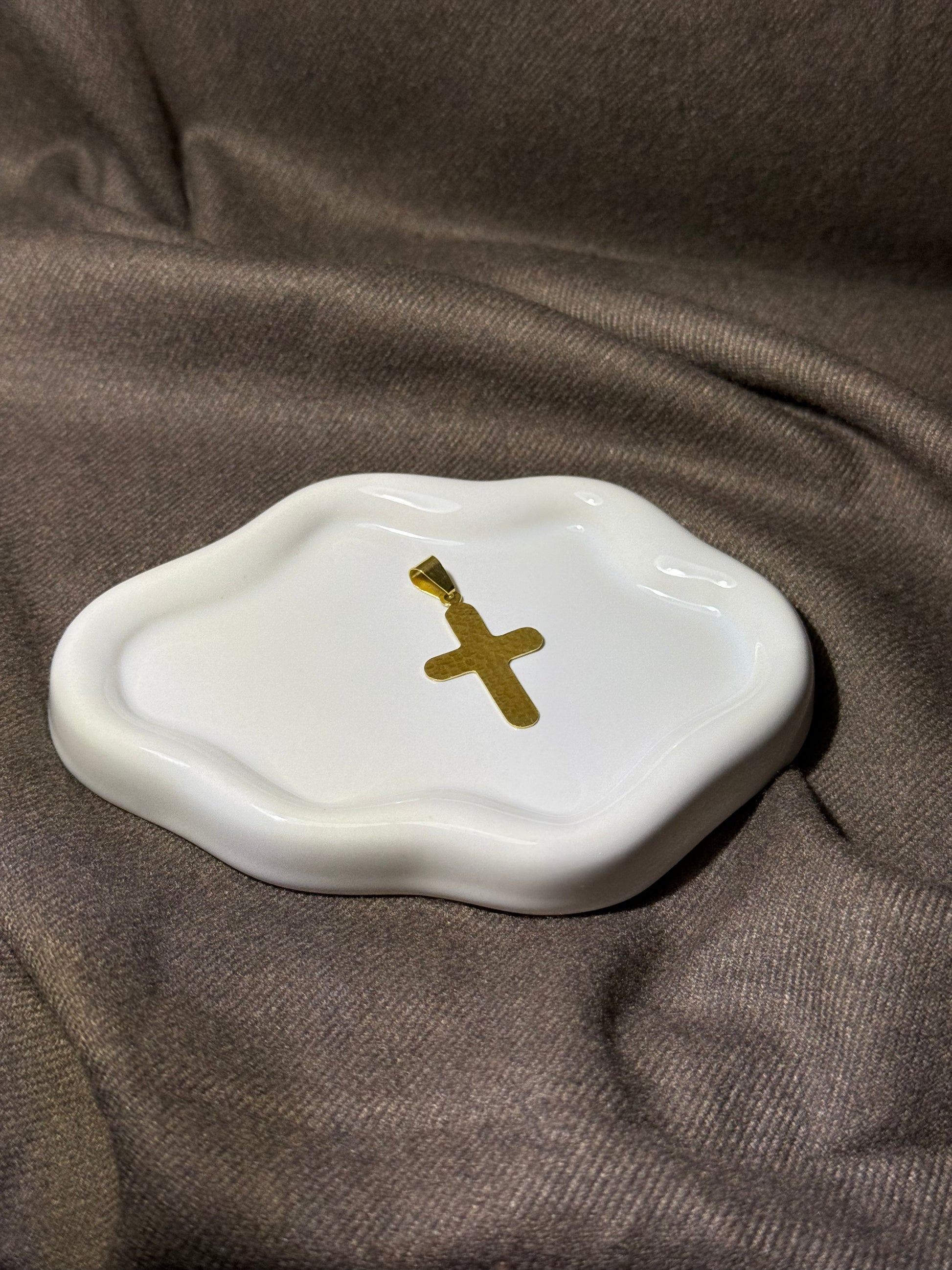 O pendente Riza traz uma interpretação moderna da cruz, com acabamento martelado que lhe confere profundidade e carácter. Um símbolo essencial, com presença subtil e design contemporâneo. Ideal para usar todos os dias sozinho ou em combinação com outros amuletos. Para uma cruz ligeiramente mais pequena, pesquise pelo Pendente Riza I.