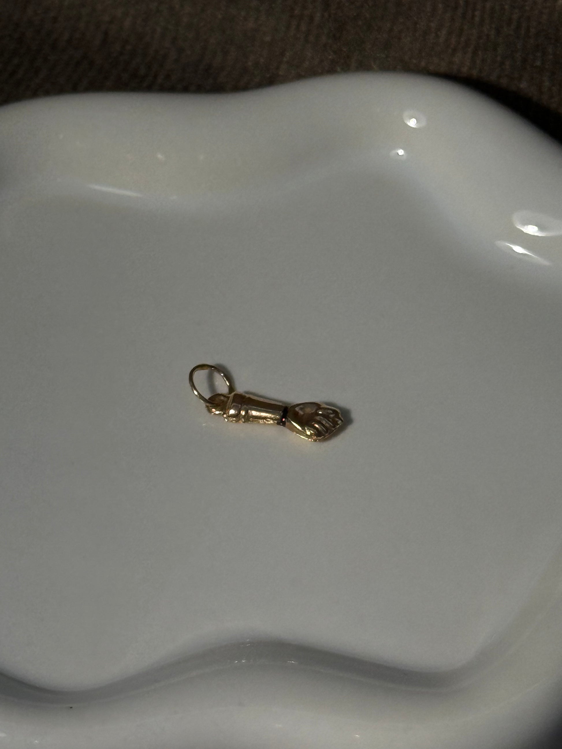Pendente em ouro com forma de punho cerrado, inspirado na figa tradicional. Um símbolo ancestral de resistência, coragem e proteção, feito para guardar a força que não se vê, mas sente.
