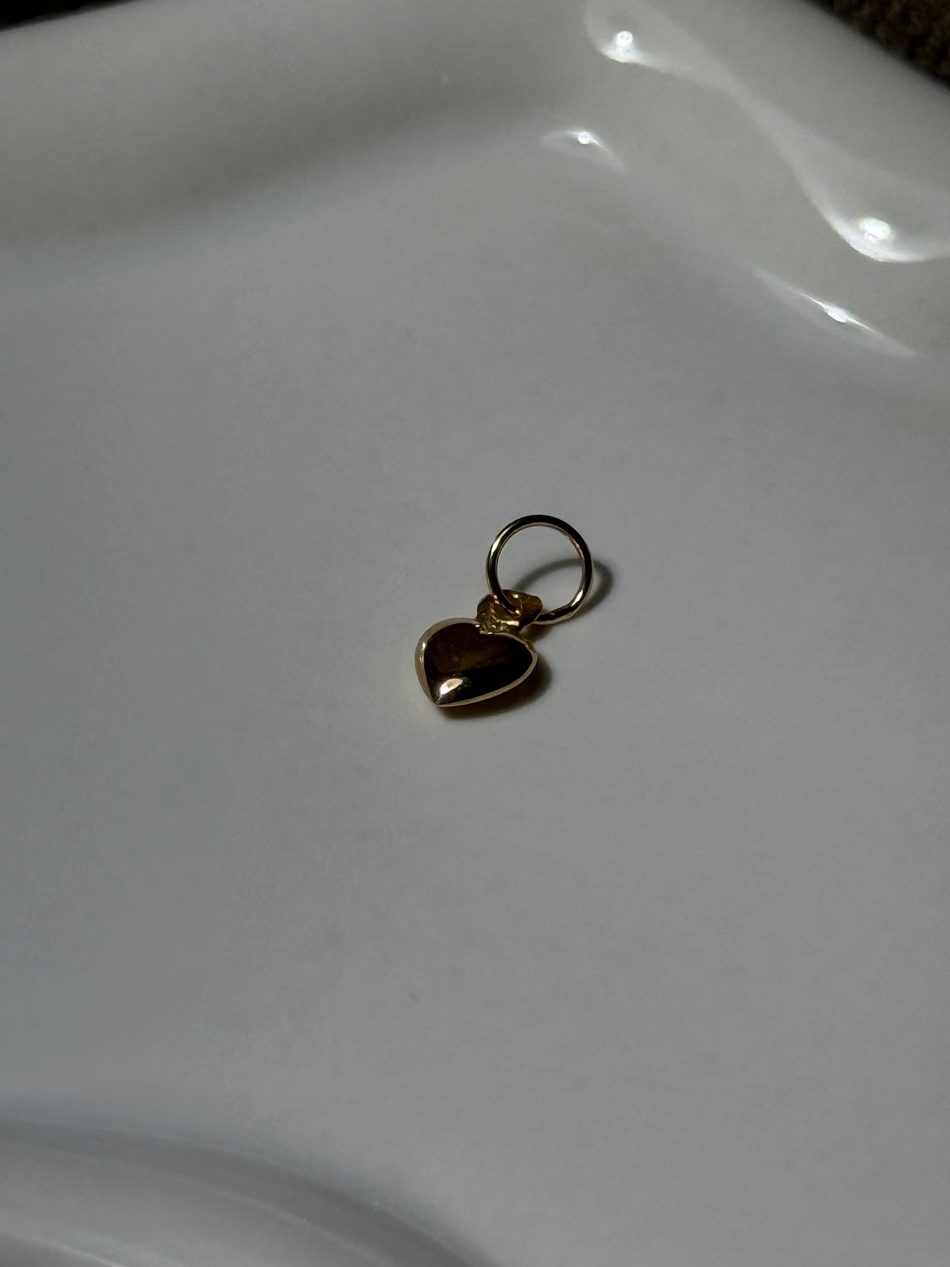 Pendente em ouro em forma de coração polido, de linhas suaves e proporção perfeita. Uma peça discreta e afetuosa, pensada para celebrar o amor em silêncio, todos os dias.