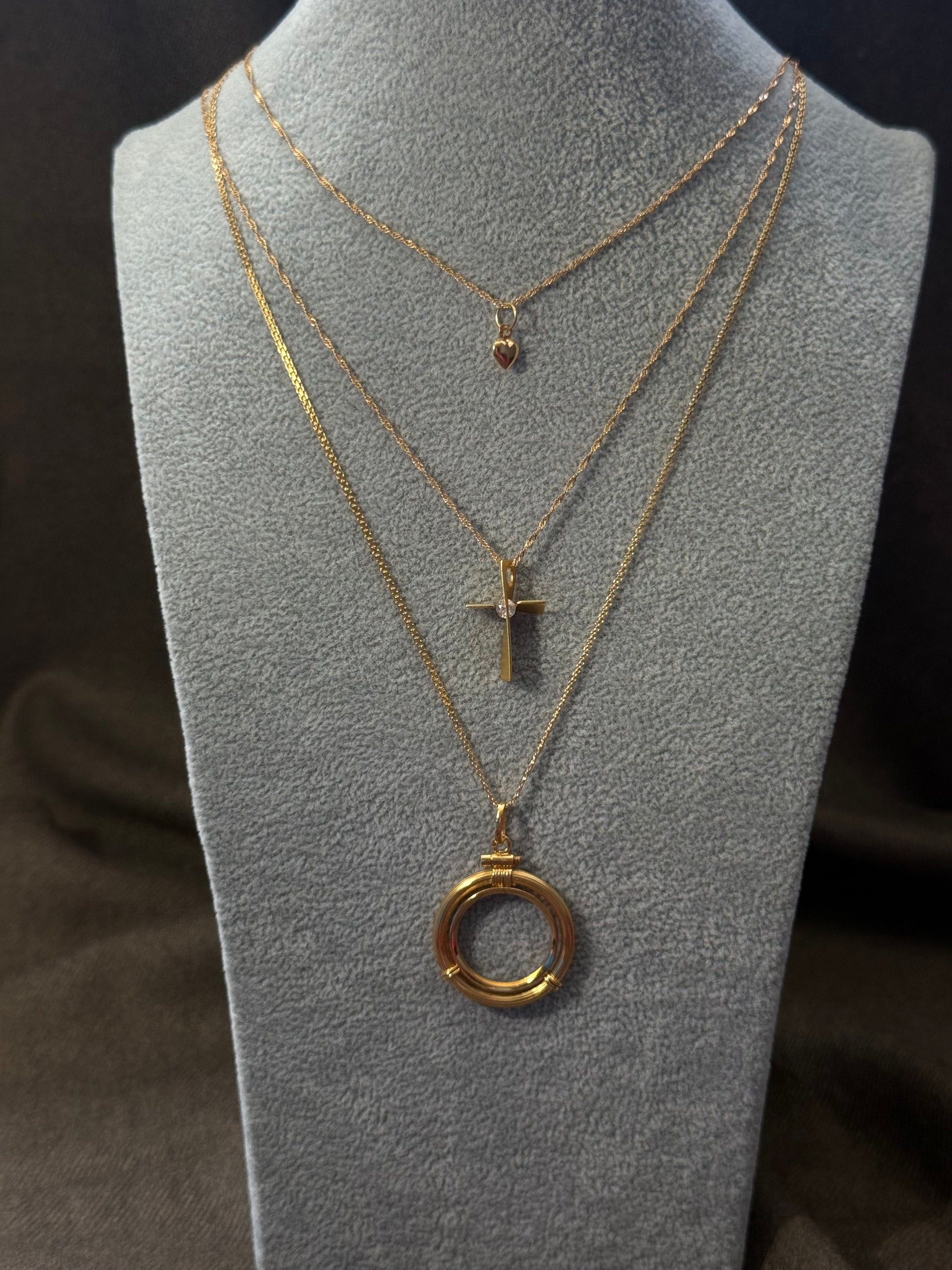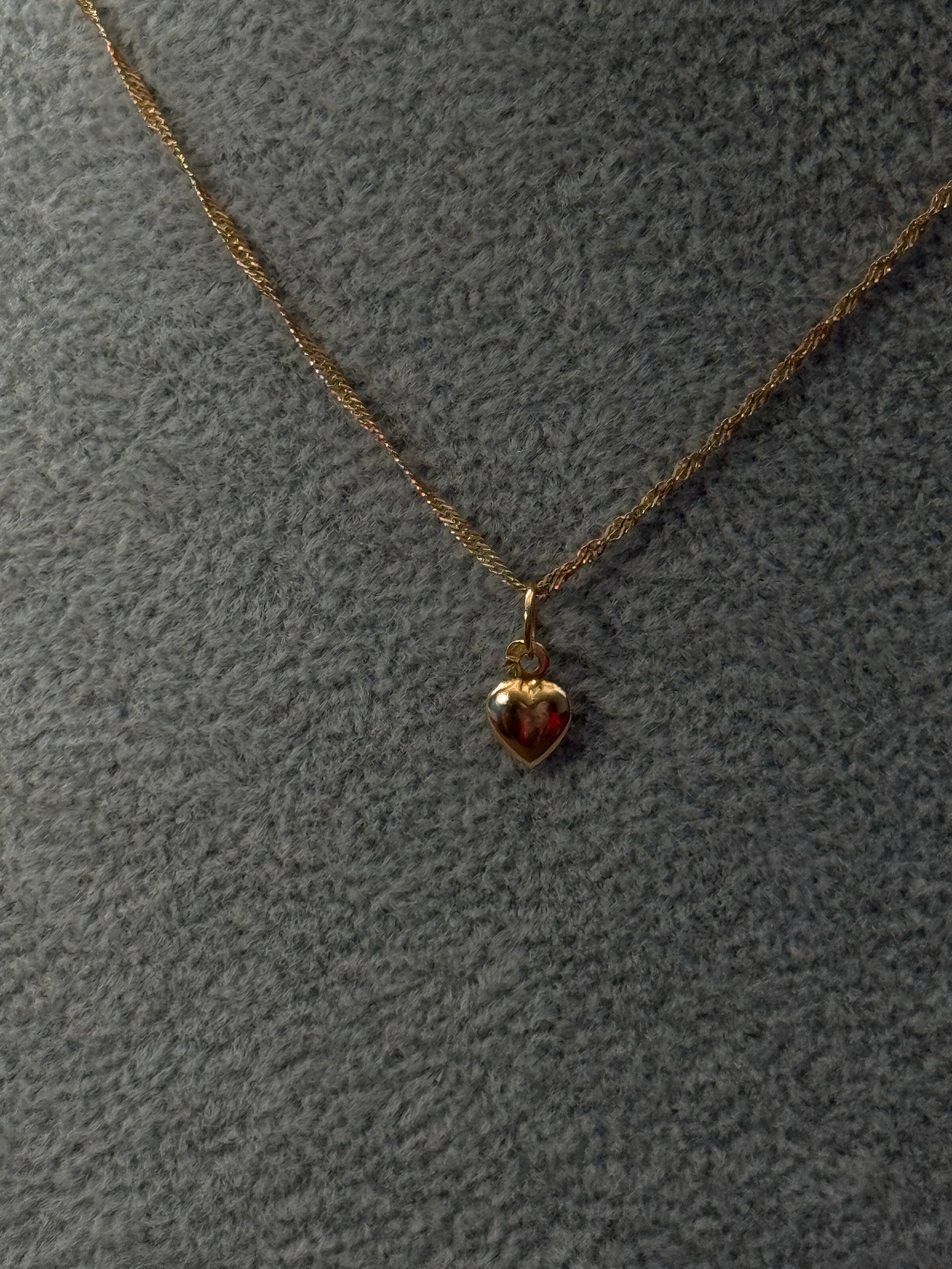 Pendente em ouro em forma de coração polido, de linhas suaves e proporção perfeita. Uma peça discreta e afetuosa, pensada para celebrar o amor em silêncio, todos os dias.
