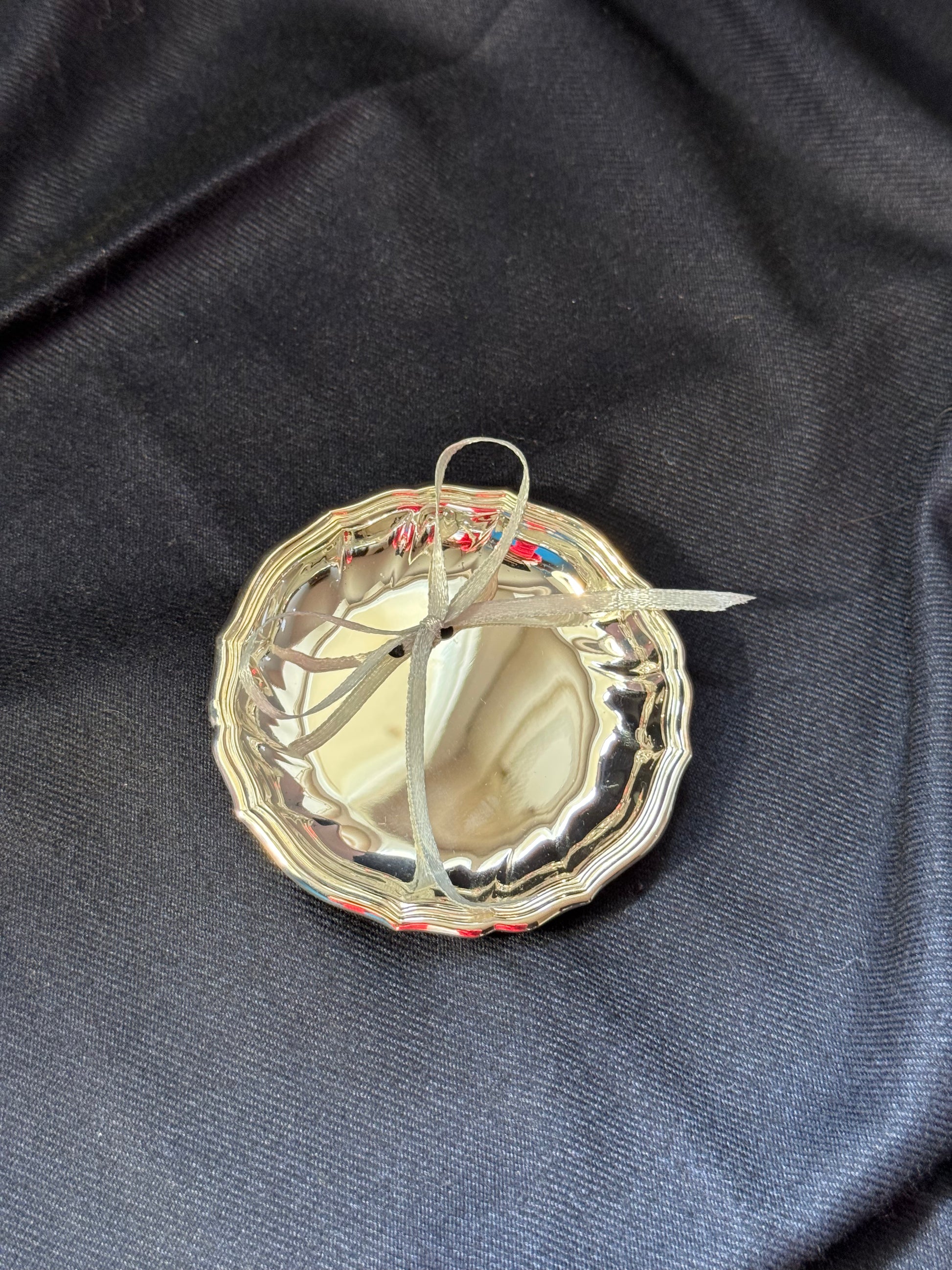 O porta-alianças apresenta um acabamento polido e ondulado, com espaço para um laço em cetim claro para segurar as alianças com delicadeza. A sua forma redonda e o brilho espelhado criam o cenário perfeito para um dos momentos mais marcantes da cerimónia: a troca das alianças. Uma peça intemporal, pensada para guardar com carinho o início de uma nova história a dois.