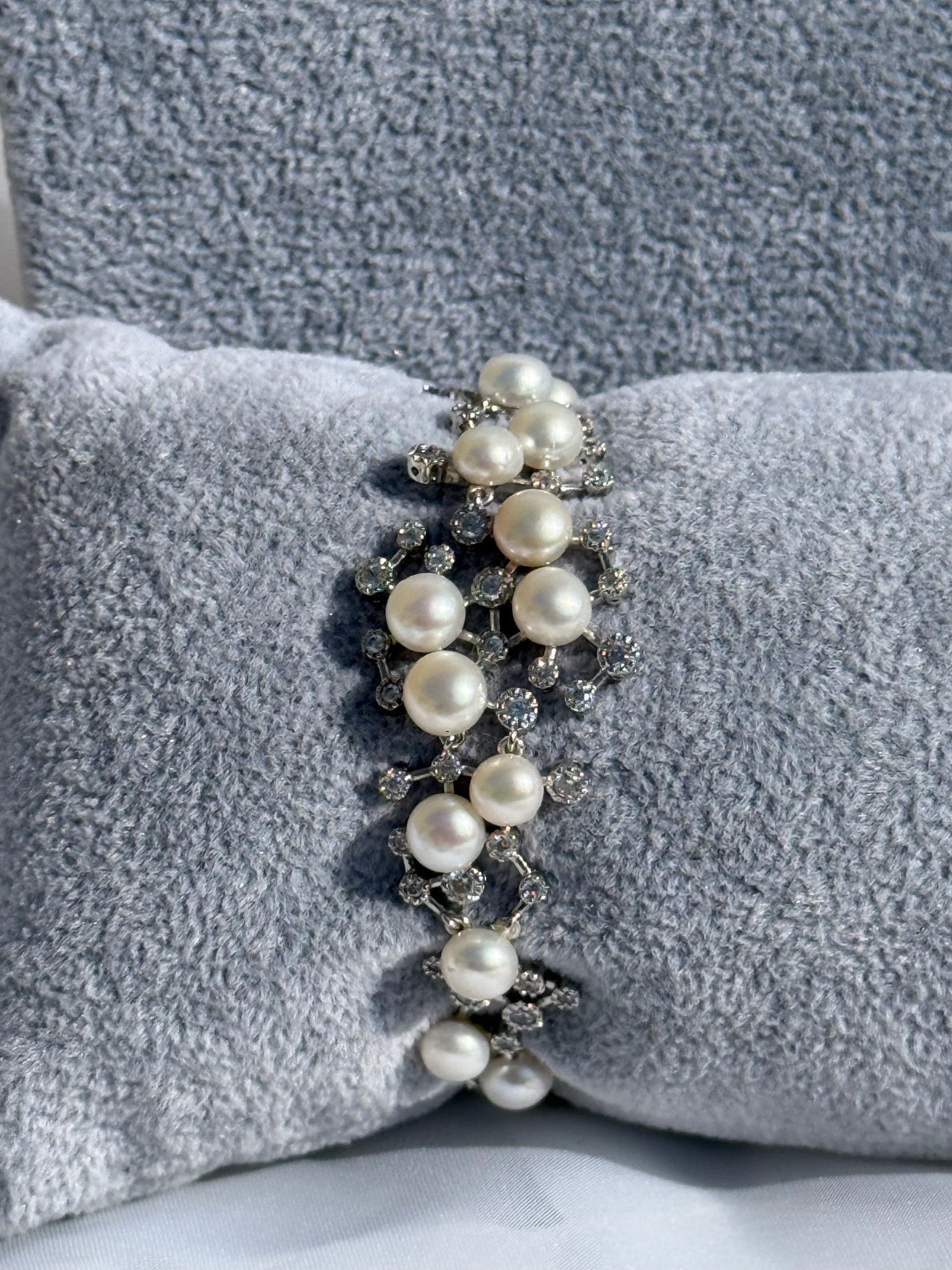 Com um design que evoca movimento e fluidez, a Pulseira Lunel combina pérolas delicadas e zircónias num equilíbrio orgânico e radiante. Uma peça que se destaca pela harmonia entre o clássico e o natural.
