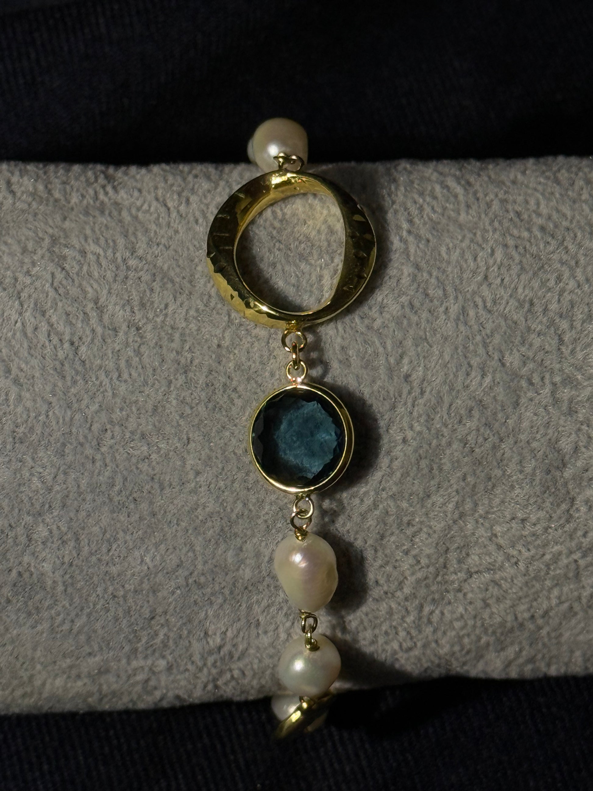 A pulseira Orla é uma celebração da sofisticação natural, com pérolas barrocas intercaladas por elementos de prata dourada e brilho profundo, conferindo-lhe um carácter quase escultórico - como se cada elemento tivesse sido moldado pela natureza e lapidado pela arte. Ideal para quem procura uma peça imponente sem abrir mão da delicadeza.