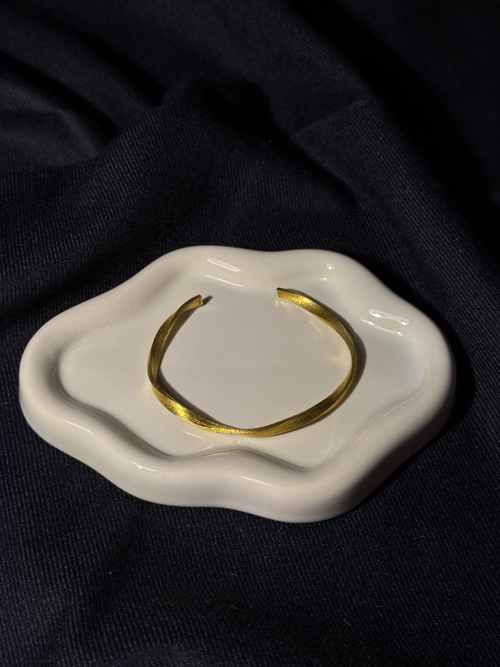 Com um design aberto e uma forma que flui naturalmente ao redor do pulso, a pulseira Savanna celebra a imperfeição como linguagem de luxo. O acabamento acetinado confere-lhe um brilho discreto e sofisticado, enquanto a estrutura firme evoca poder e presença. Um acessório pensado para mulheres que se destacam pela subtileza e pela força.